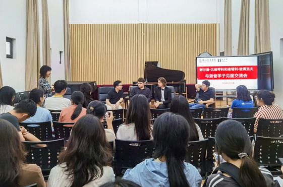 谢尔盖·达维琴科畅谈了自己关于音乐学习方面的感悟,并表示很荣幸受聘为浙音荣誉驻院青年艺术家。他会充分发挥自己的专业优势,与浙音师生开启一场精彩的音乐旅程,共同为推广和传播钢琴艺术贡献力量。