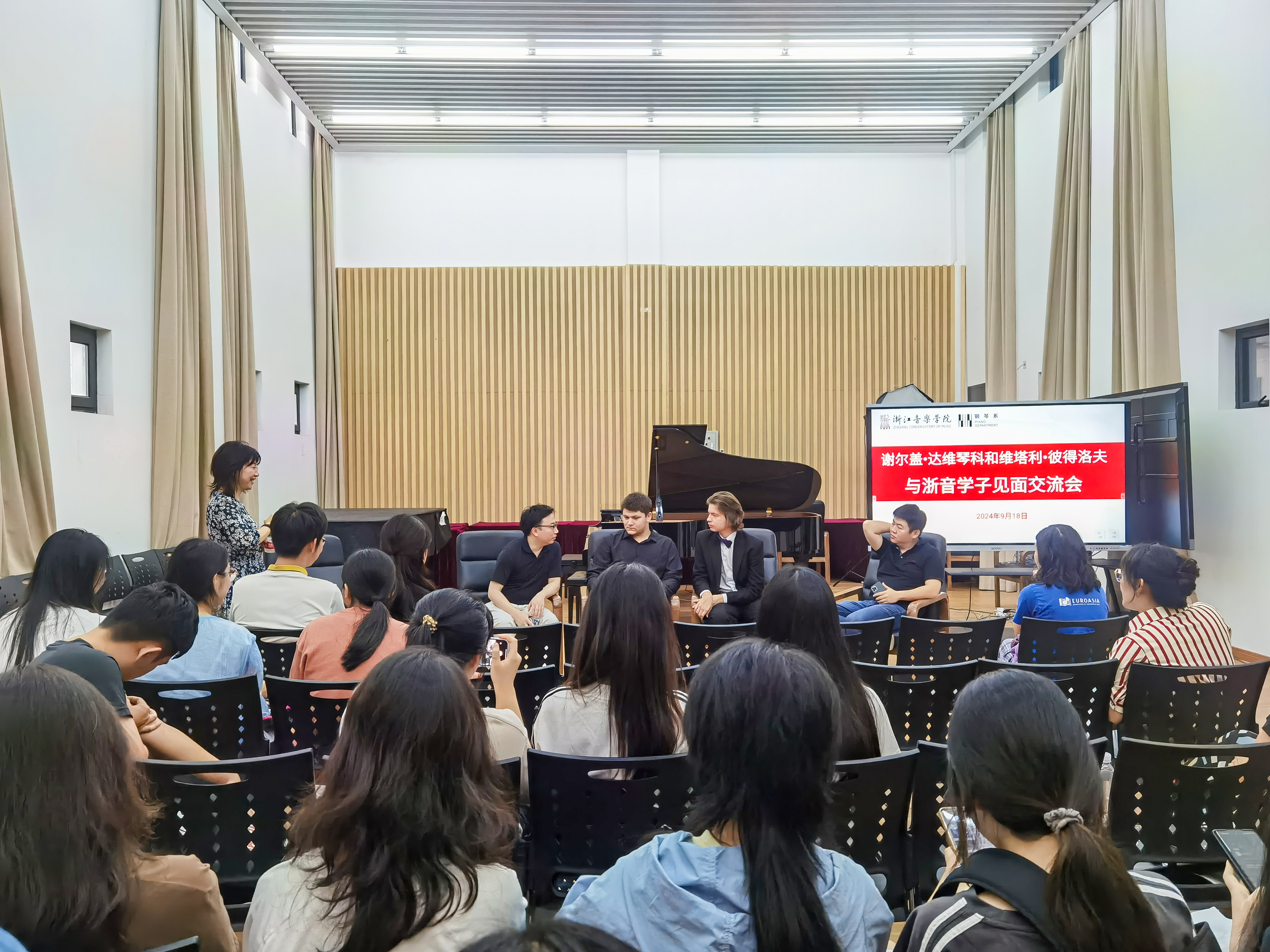 当天,谢尔盖·达维琴科一行受邀参加了钢琴系的“一系一品牌”——黑白键论坛,与钢琴系学子开展了深入交流。