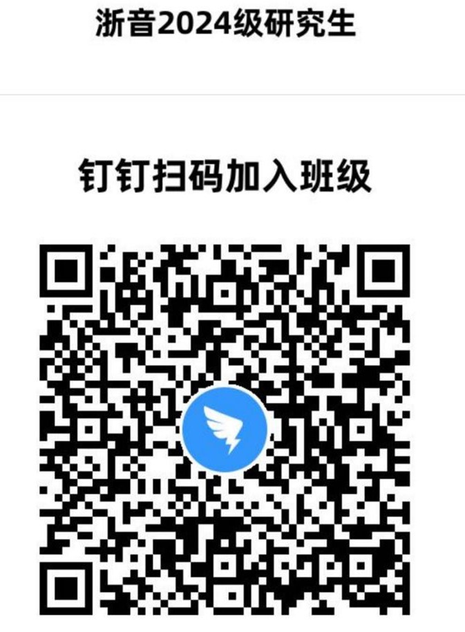 1.请拟录取新生在钉钉软件中搜索群号RNLQ2134或扫描下方二维码,加入“浙音2024级研究生”群,在群文件下载调档函并打印(必须彩色打印,否则无效),自行交至档案所在单位进行调档工作。申请加群请务必填写报考院(系)+真实姓名,未备注真实姓名的申请均不受理。