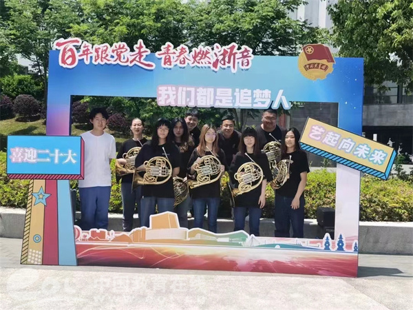 本次活动以百年团史为主线,突出了浙音专业优势。在活动当天,浙音学子还分别带来了器乐演奏、诗歌朗诵、音乐思政微课等丰富多彩的活动。
