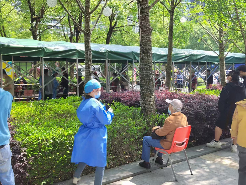 《蓝色多瑙河》《梁祝》《小步舞曲》《天空之城》......当音乐声响起时,排队等候检测的群众和医护人员不再枯燥,音乐的力量鼓舞着每一个人。家住尚德社区朗郡庭园的徐爷爷一直热衷于学习小提琴,自退休后每天会花几小时和琴友们一起在小区草坪上演奏。对徐爷爷而言,当天的核酸检测仿佛是一个惊喜:“没想到在核酸检测队伍中,竟能听到这么专业的演奏。琴声温暖动人,让大家感觉做核酸也有了仪式感,瞬间放松了下来。”