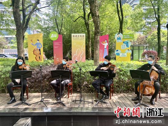 中新网:浙音学子送音乐进社区 让核酸检测现场充满艺术感