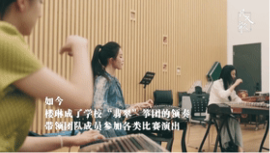 如今,楼琳成了学校“翡翠”筝团的领奏,带领团队成员参加各类比赛演出。