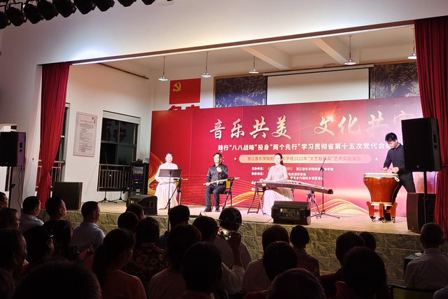 “太阳最红,毛主席最亲,您的光辉思想永远照我心……”昨晚,一场以“音乐共美 文化共富”为主题的文艺下乡汇演在淳安县富文乡六联村文化礼堂拉开维幕。