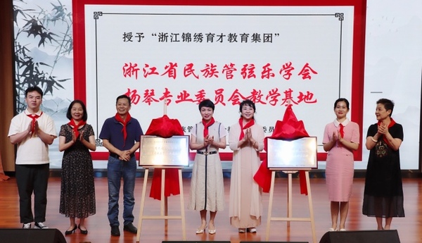 新学期第一天,杭州育才登云小学和杭州锦绣育才中学附属学校迎来了开学第一堂音乐大课——《风华国乐 悠扬琴韵》,以此为主题的扬琴教学基地揭牌仪式暨2022学年第一学期开学典礼在校园里隆重举行。