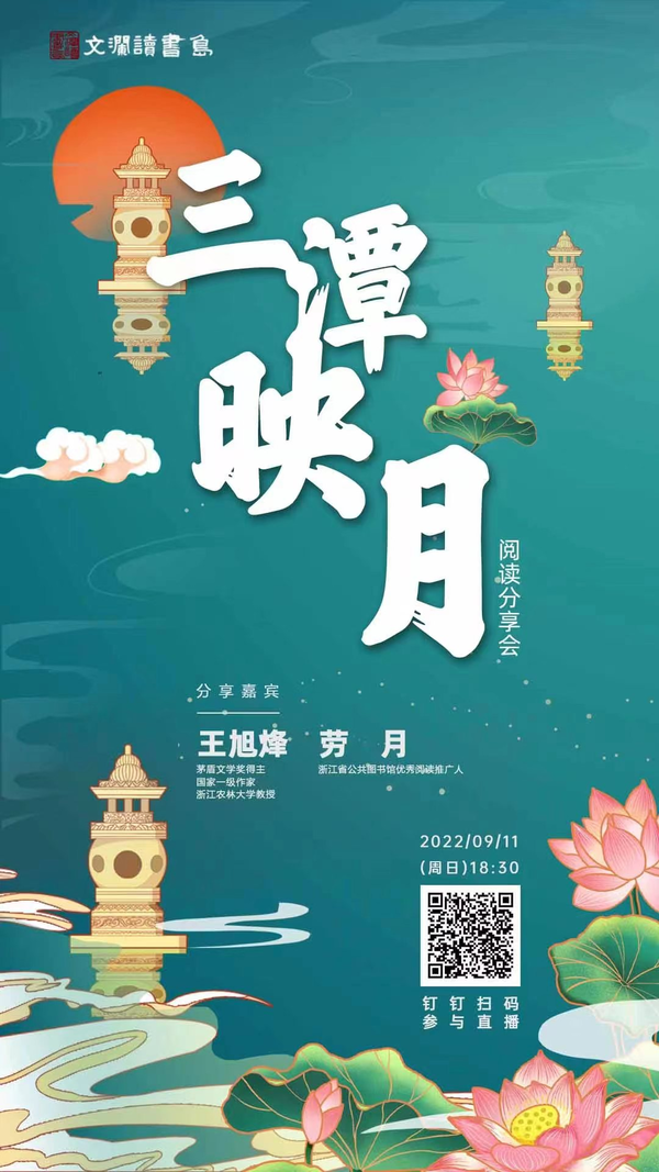 活动简介:“西湖际秋水益澄,明月际秋光益洁,水月交辉,境界独具,天上月、湖中月相映成趣,妙趣横生,这样的水月云天令人陶醉不已”,西湖被誉为赏月佳地。9月11日,八月十六月正圆时,我们便邀请读者,在杭州西湖,共赏天穹中那滴巨大的、饱满的金黄色泪珠,同时品读王旭烽的《三潭印月》带给我们的独一无二的艺术形象。