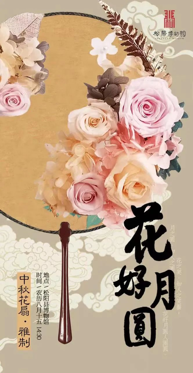 活动简介:中秋,是个团圆的好日子。轻风团扇,有如天上的明月;花团锦簇,有如人们的笑靥。值此佳节,让我们一同相聚松博,执一花扇,予你花好月圆。