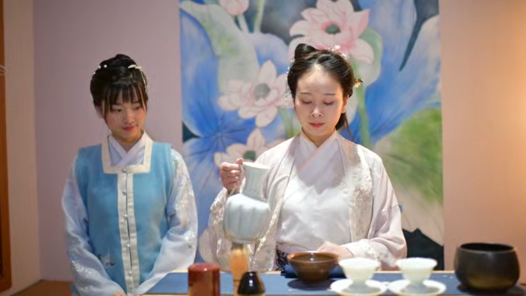 活动简介:宋代是茶文化发展的顶峰时期,宋人笔记《南窗纪谈》中记录了 “客至则设茶,欲去则设汤”的习俗,可以说饮茶是宋人生活必不可少的一部分。今年中秋,八咏楼邀请了专业的茶艺老师为观众展示宋代点茶法,包括碎茶、碾茶、罗茶、茶末置盒、撮末于盏、点茶、搅拌茶末、置茶托等步骤演示,观众可与茶艺师互动,体验如何在茶汤表面绘制出富有韵味的图案。