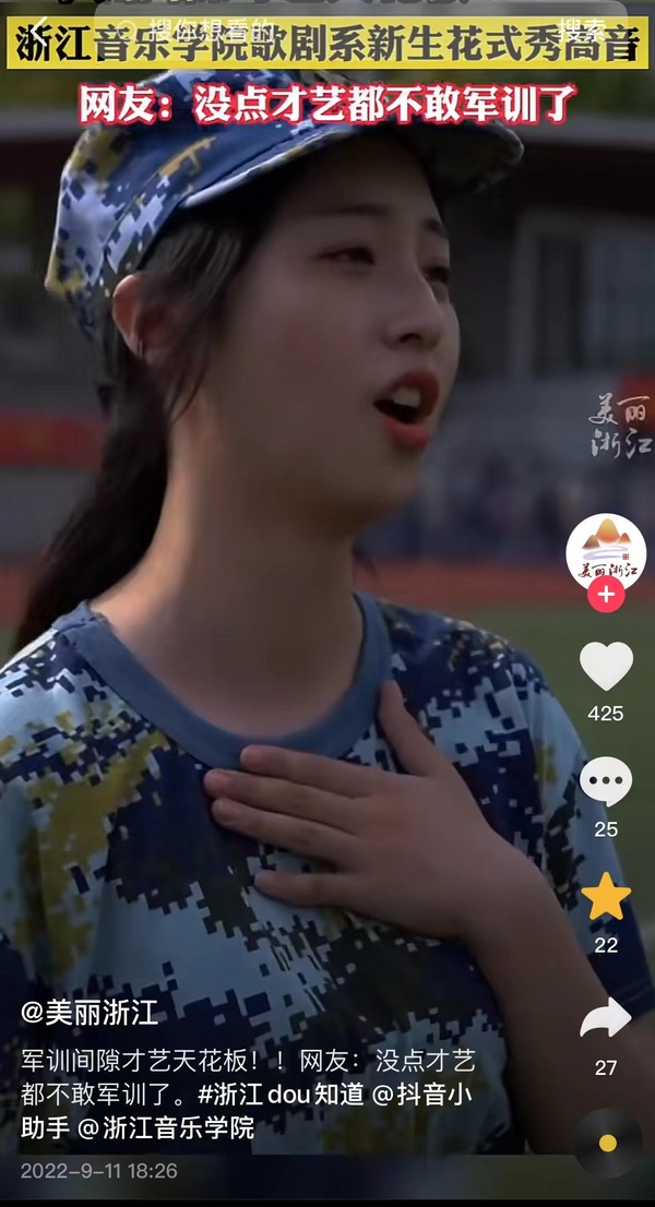 新闻来源:6-2复制打开抖音,看看【美丽浙江的作品】军训:/ 间隙才艺天花板!!网友:没点才艺都不敢军训了。... ㄍㄍ20vmS0tABzPNv8ÄÄ (复制链接,打开抖音观看)