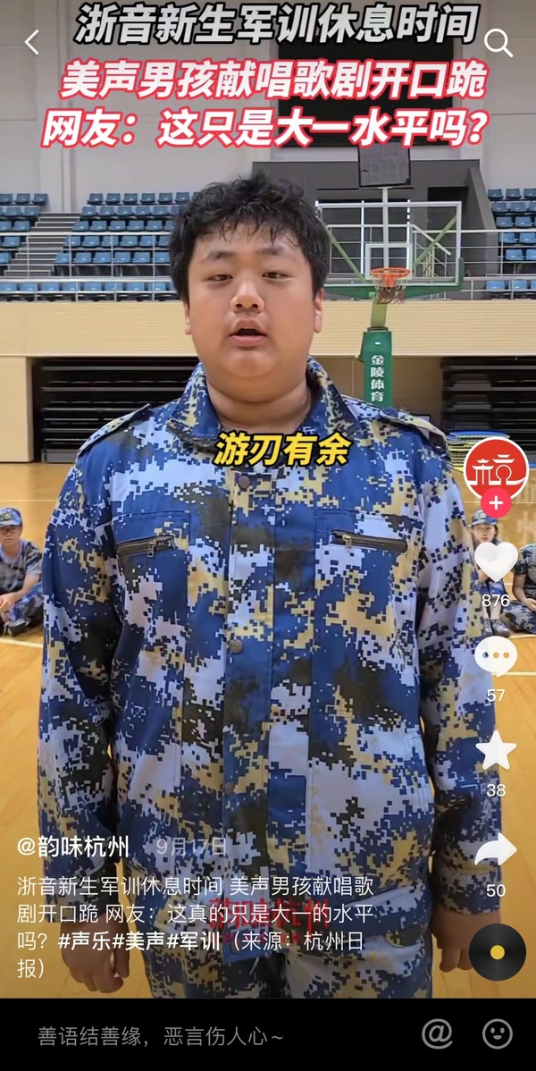 韵味杭州:浙音新生军训休息时间 美声男孩献唱歌剧开口跪