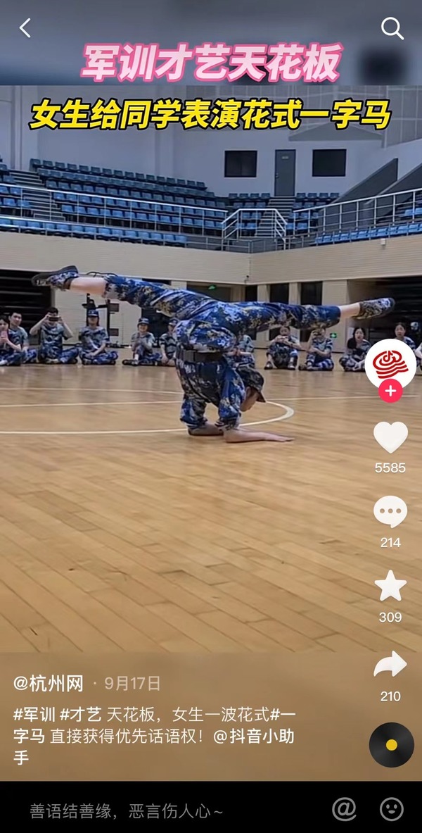 杭州网:军训才艺天花板 女生给同学表演花式一字马