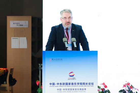 本届论坛是疫情发生以来,中国—中东欧国家音乐院校联盟的首次线下相聚,得到了联盟成员院校、中东欧其他音乐院校以及驻华使领馆的高度重视和积极参与。保加利亚驻上海总领事瓦尔德斯拉夫·斯帕索夫和罗马尼亚驻上海代总领事奥维迪乌·西米纳、匈牙利驻上海总领事馆文化与教育领事洋风出席论坛开幕式。