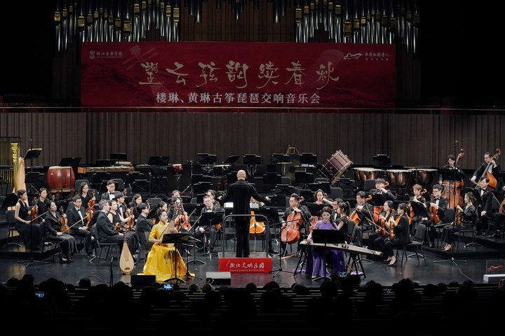 音乐会以古筝与瓷乐新作《瓷韵东方》启幕,青年古筝演奏家、浙音校友楼琳携浙江独具特色的慈溪市青瓷瓯乐团等联袂演出,以浙江民歌《里郎歌》和《什么花开对对双》为音乐动机,用筝化和瓷乐的交融性艺术语言,表现了瓷器从素胚到烧窑再到最终呈现的唯美过程,描绘中国瓷器的文化神韵和诗画浙江的东方美学。琵琶协奏曲《云想花想》由青年琵琶演奏家黄琳倾情演绎,用女性化优美的旋律、灵动雀跃的舞蹈性节奏将深切情丝娓娓道来。《乐在其中》用古筝与钢琴表达“乐”字中所蕴含的“其乐融融”之美好寓意,以充满动力与能量的音乐形象描绘生命的绚烂。