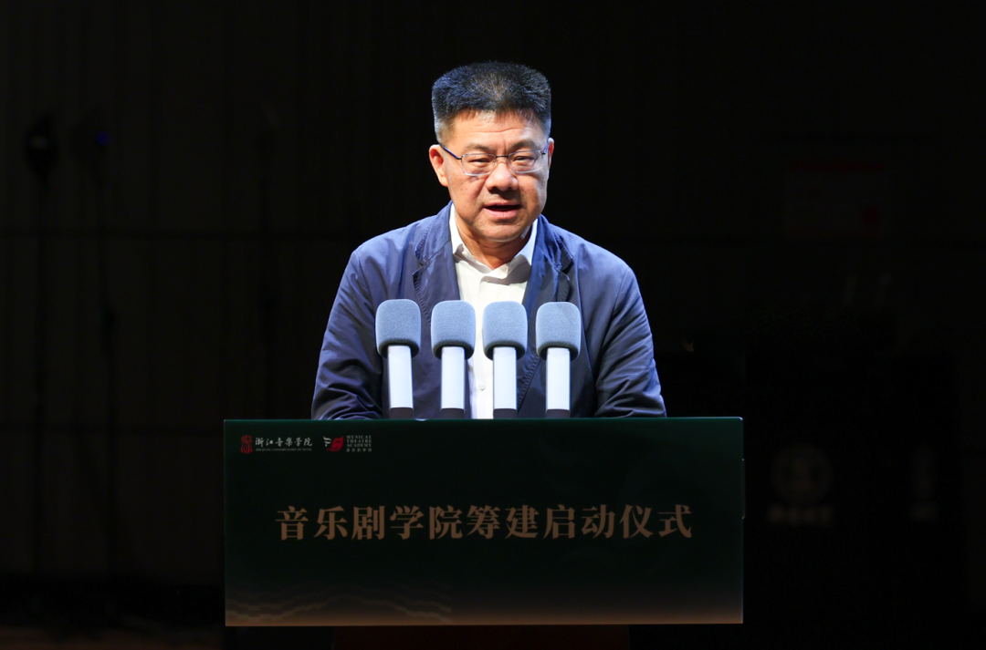 在浙音音乐剧学院筹建启动仪式上,中国文联原党组成员、书记处书记张宏致辞,他说,浙音音乐剧学院及音乐剧中心的成立是一个创举,它为中国音乐剧搭建了一个国际化平台,未来,希望浙音音乐剧学院整合学院与社会资源,打造出优秀剧目,让中国故事在音乐剧舞台获得国际回响。