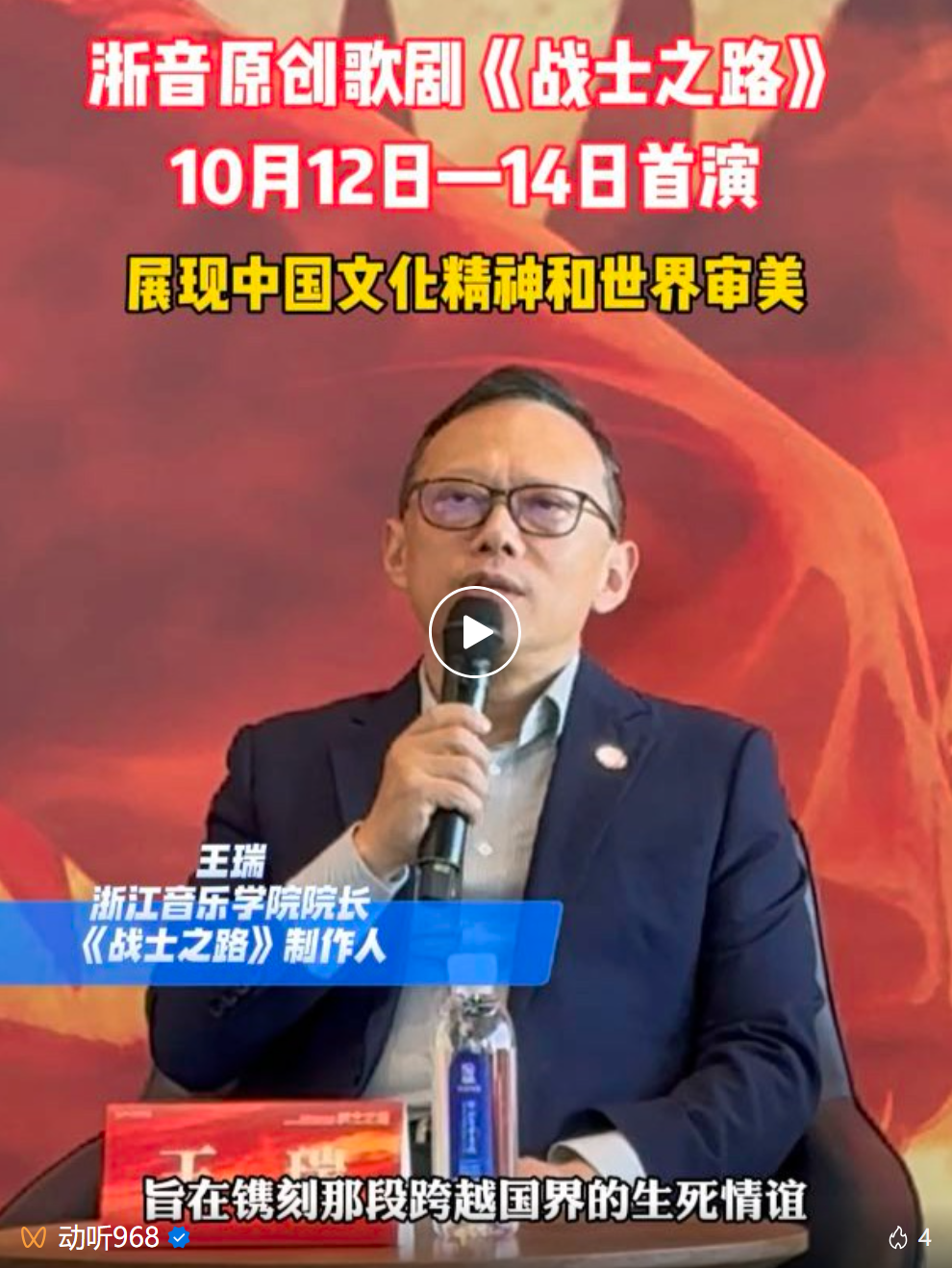 歌剧《战士之路》不仅融历史厚度、艺术高度与时代温度于一体,更以独特的艺术语言构筑起一座连接历史与当下的精神桥梁,通过震撼人心的舞台呈现,让抗战精神在当代观众心中焕发出新的光辉。正如意大利籍导演皮埃尔·弗朗切斯科·马埃斯特里尼所说:“这是一个激动人心的故事。它启示我们,在人民遭受攻击时,盟友间的合作与忠诚汇聚成的力量至关重要。在当今风起云涌的国际关系中,这种勇于反抗强权、彰显团结与正义的精神尤为珍贵。”王瑞也表示,希望通过艺术这一无国界的语言,将这份勇气、牺牲与守望相助传承下去,让今天的观众在艺术的震撼中,深刻理解历史的厚重与壮阔,更加珍视当下的和平,并携手开创一个更加光明的未来。“愿这部歌剧成为一座桥梁,连接历史与现实,传递永恒的记忆与希望。”