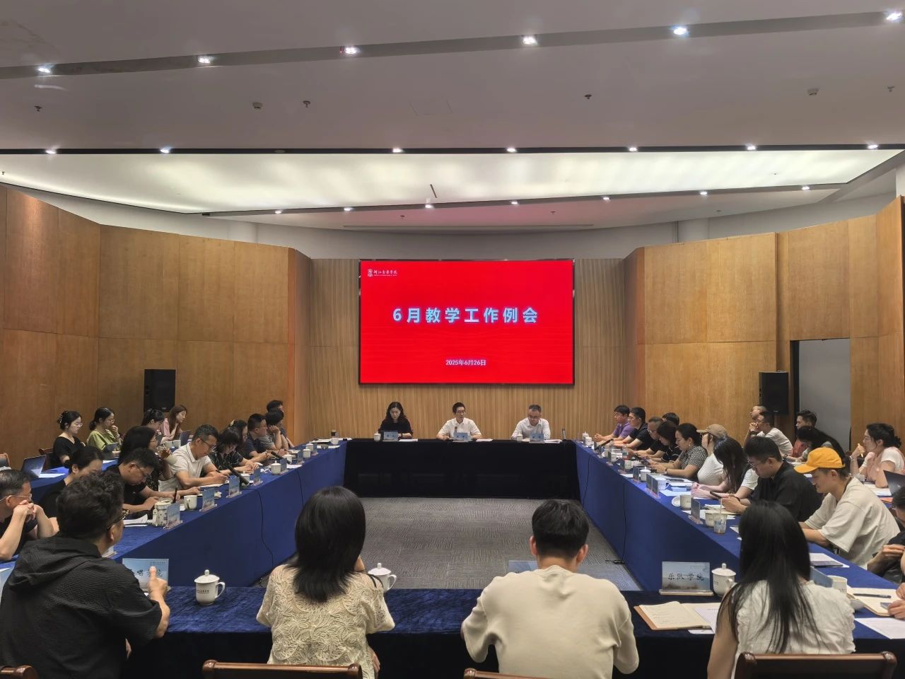 6月26日上午,学院2024-2025学年第二学期期末教学工作例会在行政楼103会议室召开。副院长汪洋主持会议,教务处、研究生处、各教学单位、五大学院负责人,教学督导组组长,学生处、国际交流合作处、信息技术中心等相关职能部门负责人及各教学单位教学秘书参加会议。
