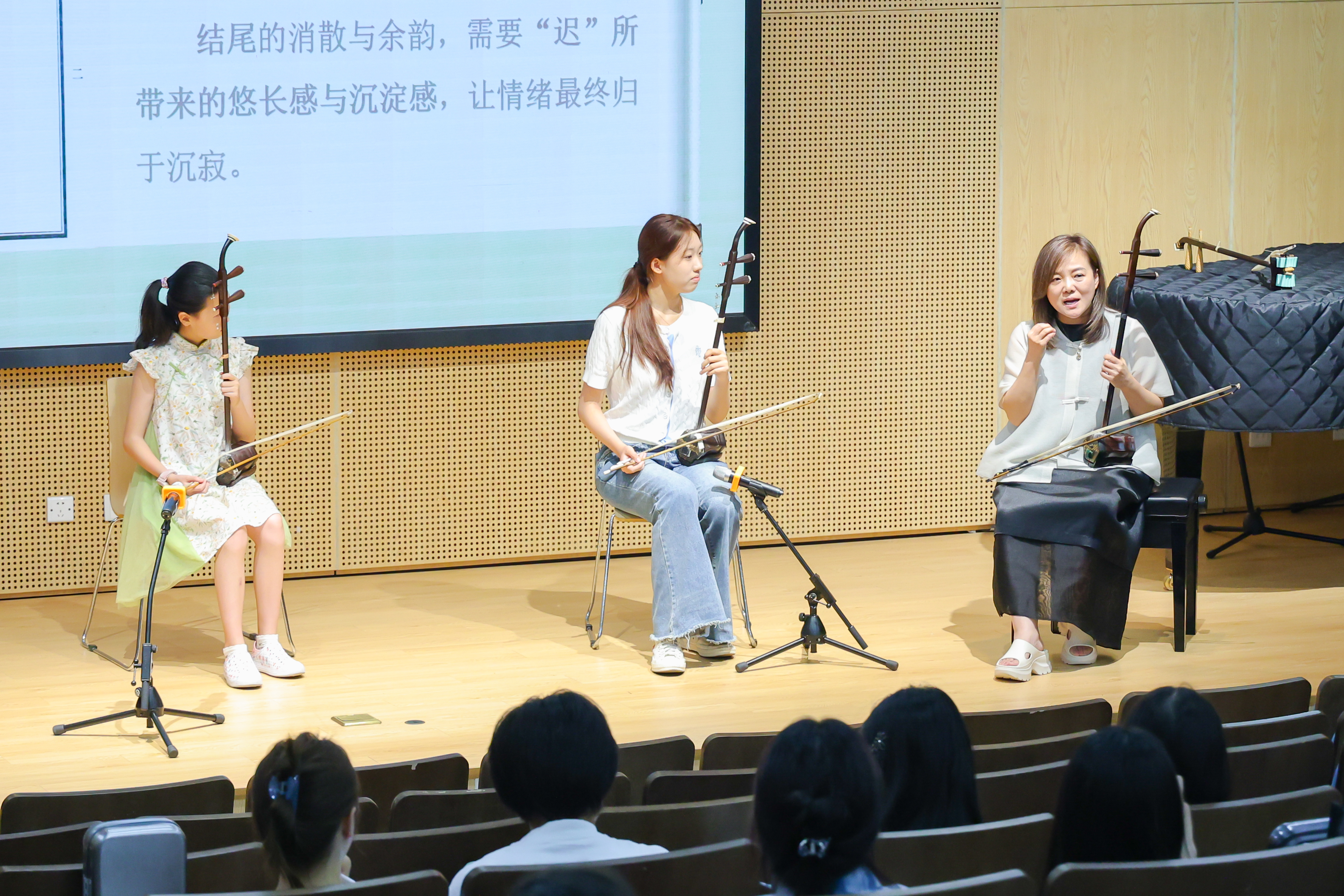 开班仪式后,陈春园以“探寻‘刘天华十首无伴奏二胡作品’的演奏况味”为题作专题讲座和公开课,从技法解析、音乐表现到文化内涵,全方位展现了刘天华二胡作品的艺术价值,为学员们奠定了理论与实践基础。