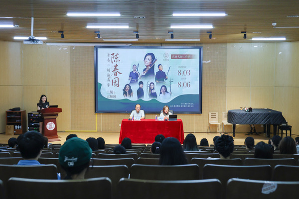 8月3日下午,由浙音乐典文化主办,浙音教培策划执行的“乐典名师工作坊——陈春园二胡大师班”在校正式开班。学院党委委员、组织部部长、人才办主任李俊,著名二胡演奏家、教育家、上海音乐学院教授、博士生导师陈春园出席开班仪式。