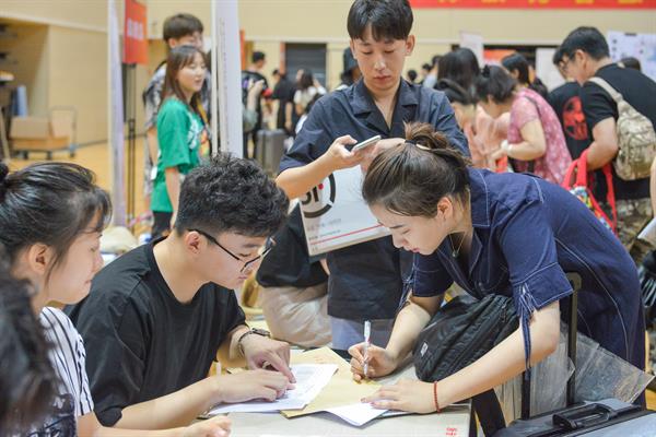 9月15日,学院体育馆迎新现场人头攒动,754名来自五湖四海的2019级新同学怀揣着青春的梦想与憧憬,踏入了向往已久的浙音校门,开启大学新生活。其中,本科新生636名,研究生新生118名。