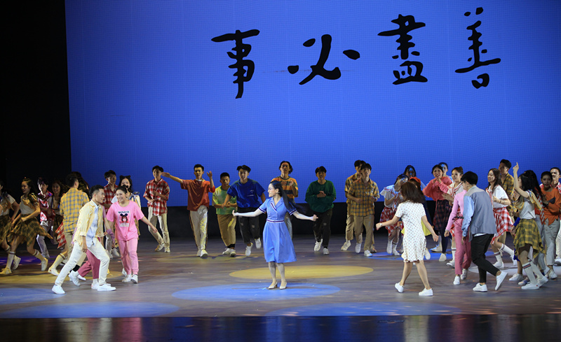 长亭外,古道边,芳草碧连天。一曲李叔同创作的《送别》在观众耳边萦绕,婉转悠扬、情深绵延的音乐道尽了万语千言。全剧充满浓郁的青春色彩,从我院学生的视角切入,探寻中国百年艺术教育的得失和教训,通过丰富的多媒体画面呈现出排练厅、雕塑群、图书馆等熟悉的校园场景,营造了浪漫诗意、励志动人的视觉氛围。故事主线清晰、舞台设计独特,人物矛盾突出、内心戏份活跃,可谓波澜迭起,扣人心弦。演员们声入人心的演唱、载歌载舞的表演,赢得现场观众的热烈掌声。观众们在观看中深深感受到作为中国现代艺术教育的先驱者和奠基人,民国艺术大师李叔同为后人留下了的那份取之不尽、用之不汲的艺术瑰宝,体会到在李叔同先生倡导的“学堂乐歌”精神下,浙音人正将“尽善”的理念,渗透到学院教育教学、学生成长成才等方方面面,以精益求精的生活态度、真善为美的处事方式,促进学院跨越式发展。