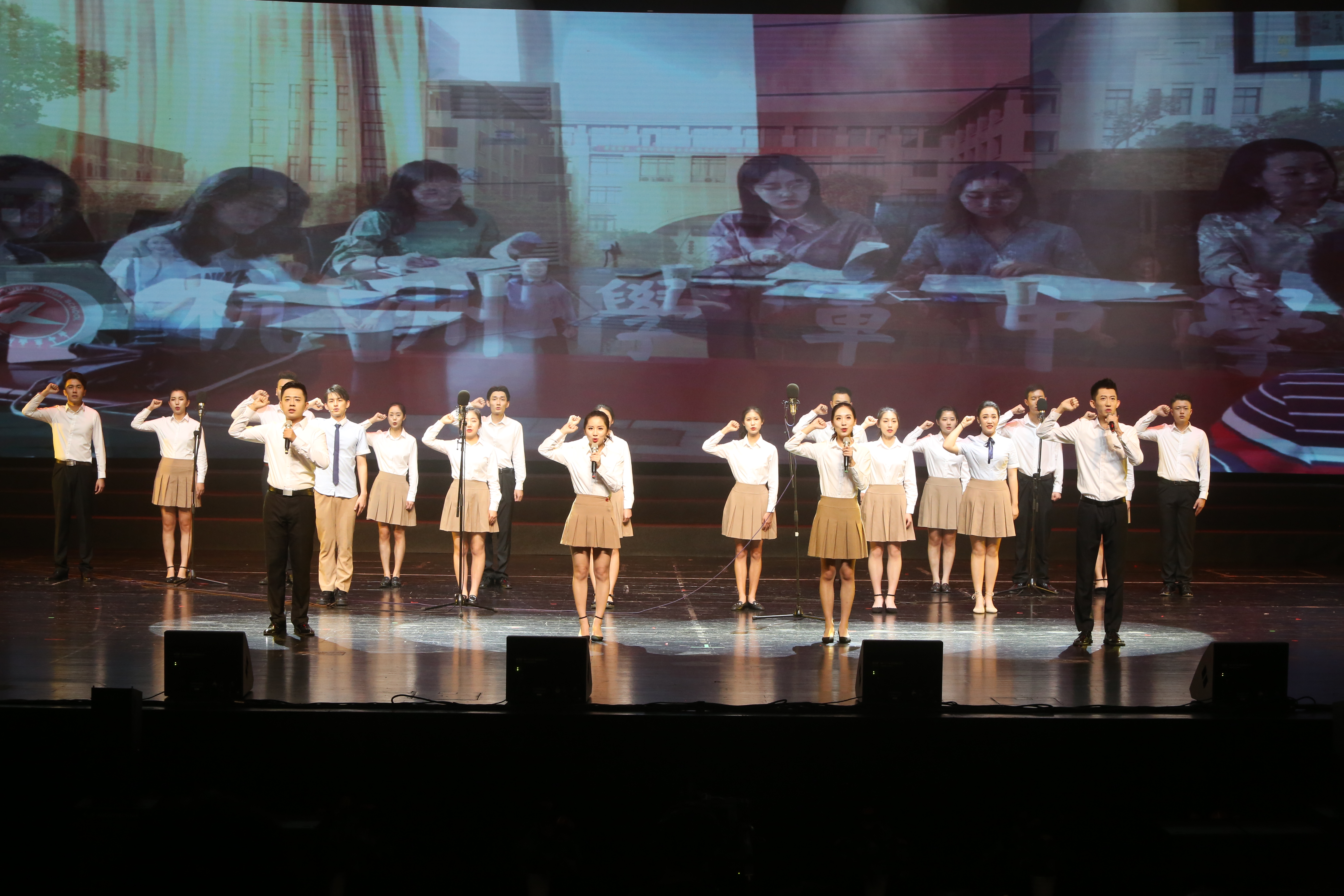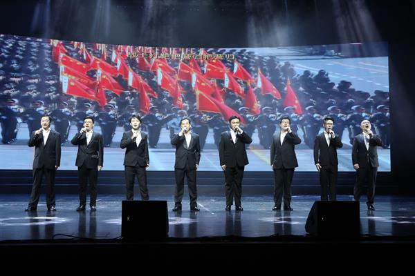 汇报演出以党员教师金奇创作的三首作品为主线串联,形成浑然一体的三个篇章,追忆中华民族从站起来、富起来到强起来的伟大飞跃,赞美新中国七十年来的奋斗历程、沧桑巨变、辉煌成就,进一步激励广大师生奋进新时代、阔步新征程,展望实现中华民族伟大复兴的光明前景。