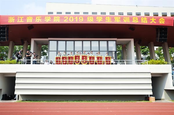 三名小号手吹响集结号,分列式表演正式开始,10个军训排依次走过主席台接受领导的检阅,各个方阵配合娴熟、动作整齐、目光坚定、口号嘹亮,他们的精彩表现赢得了全场观礼观众一致好评和阵阵掌声,展现出浙音新生经过军训洗礼后良好的精神风貌和军事素质。分列式结束后,进行了精彩的团体操、军体拳表演,以及特别为纪念中华人民共和国成立70周年精心准备的精彩表演,展现了优秀的品质与坚强的意志,表达了对祖国美好未来的深深祝福。