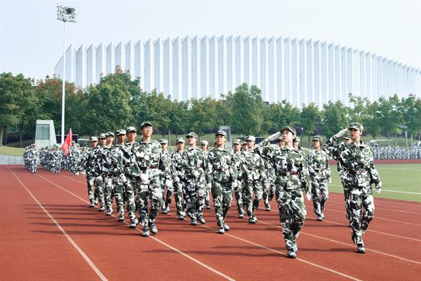 胡建新在吴龙的陪同下对2019级600余名新生进行检阅。