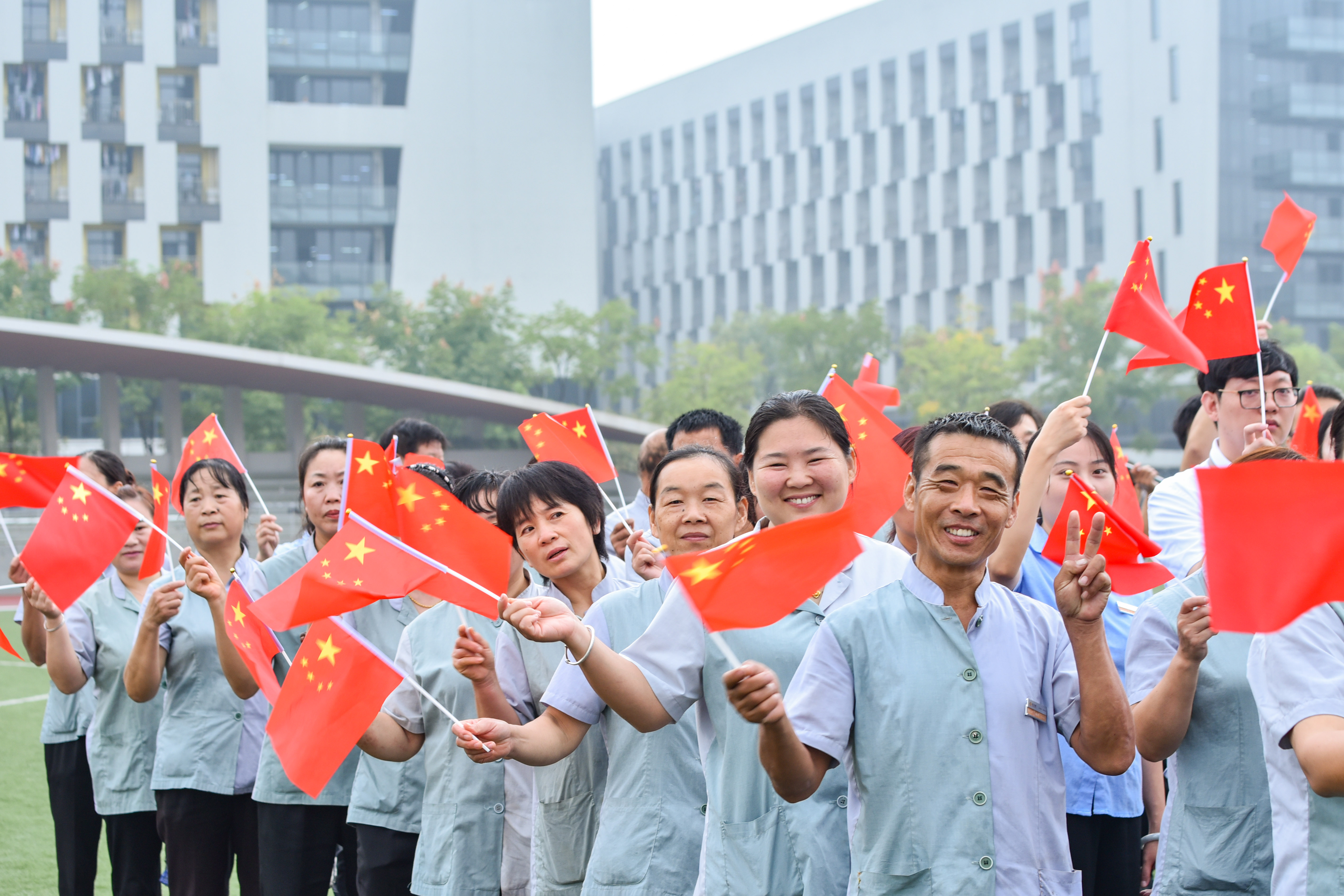 上午8时,师生们冒雨在操场隆重举行升旗仪式。国旗护卫队队员们迈着整齐划一的步伐,将国旗护送至升旗台,师生员工肃立注目。在庄严的国歌声中,鲜艳的五星红旗冉冉升起,大家满怀崇敬之情向国旗行注目礼,送上对祖国最美好的祝福。升旗仪式结束后,还举行了“祝福祖国”校园快闪,大家挥舞手中的国旗,以歌言志,以艺抒情,表达对伟大祖国最深情的热爱。
