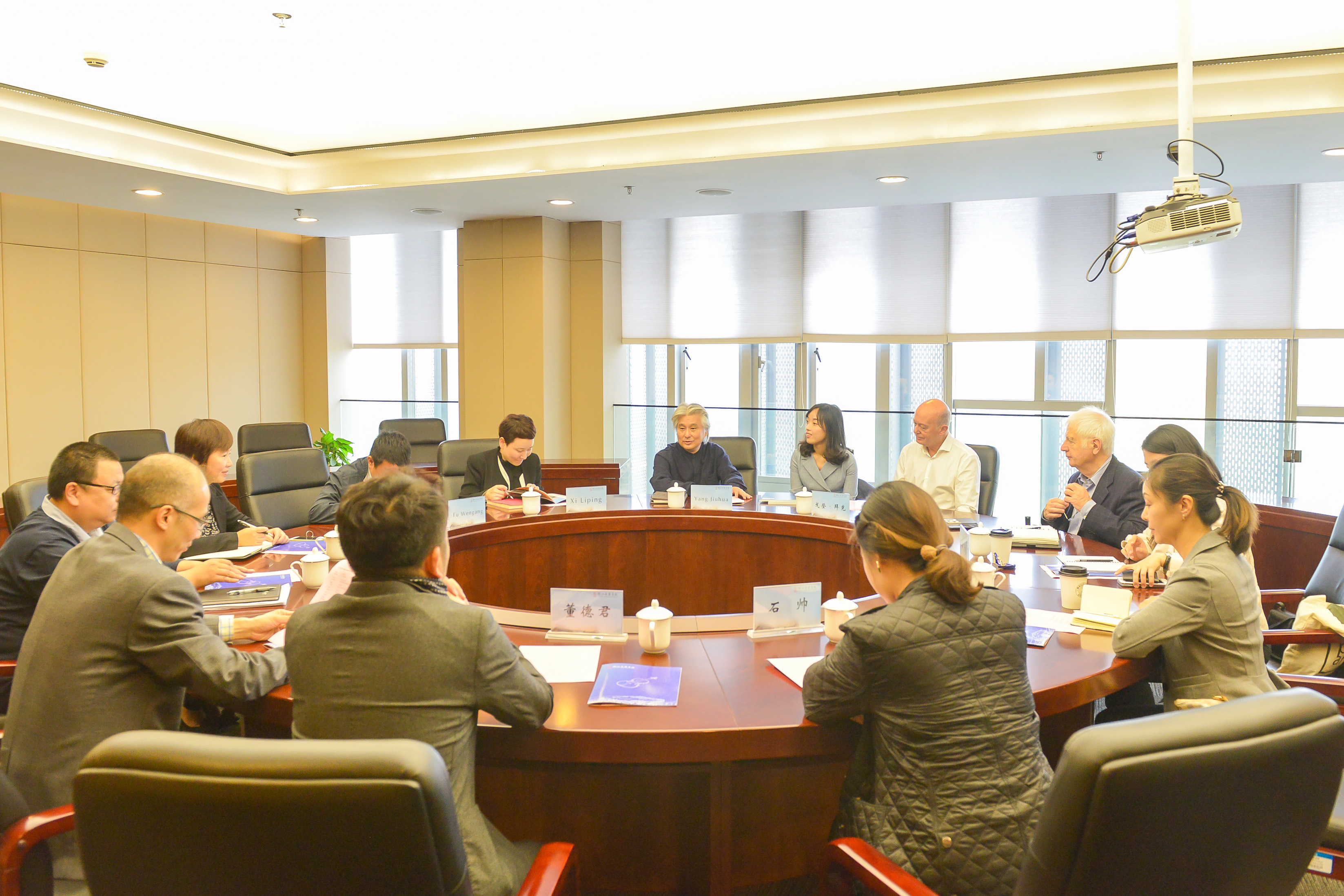 会上,学院副院长杨九华简要介绍了学院基本情况,并表达了学院承办梅纽因国际青少年小提琴比赛的意愿。戈登•拜克介绍了历届赛事的基本操作模式,充分肯定了学院的办学条件与设施。双方就下一步的合作进行深入交流。