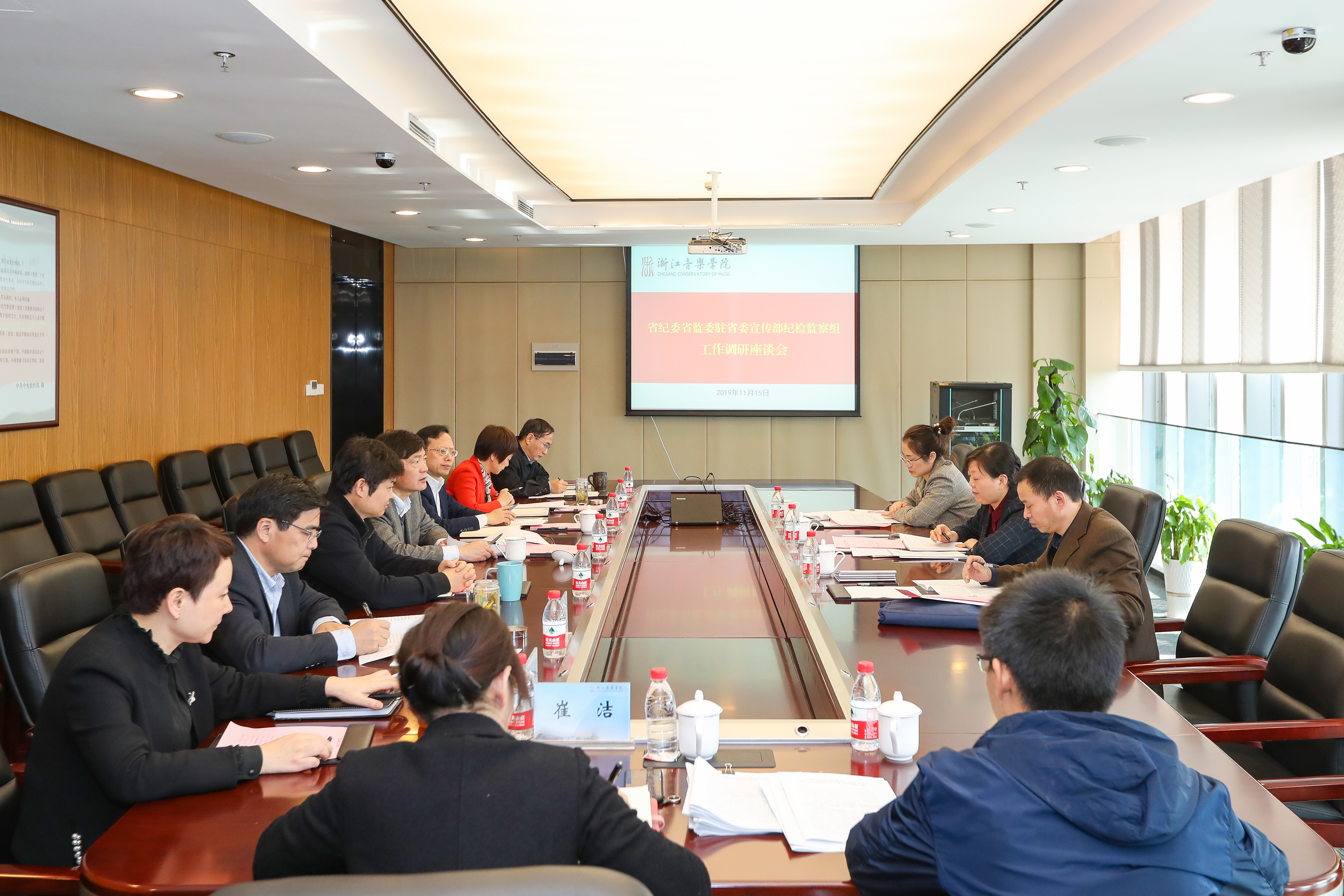 11月15日上午,省纪委省监委驻省委宣传部纪检监察组组长俞慧敏,副组长叶向阳、赵路夷等来学院调研指导,学院党委领导班子全体成员及相关部门负责人等参加调研并座谈。