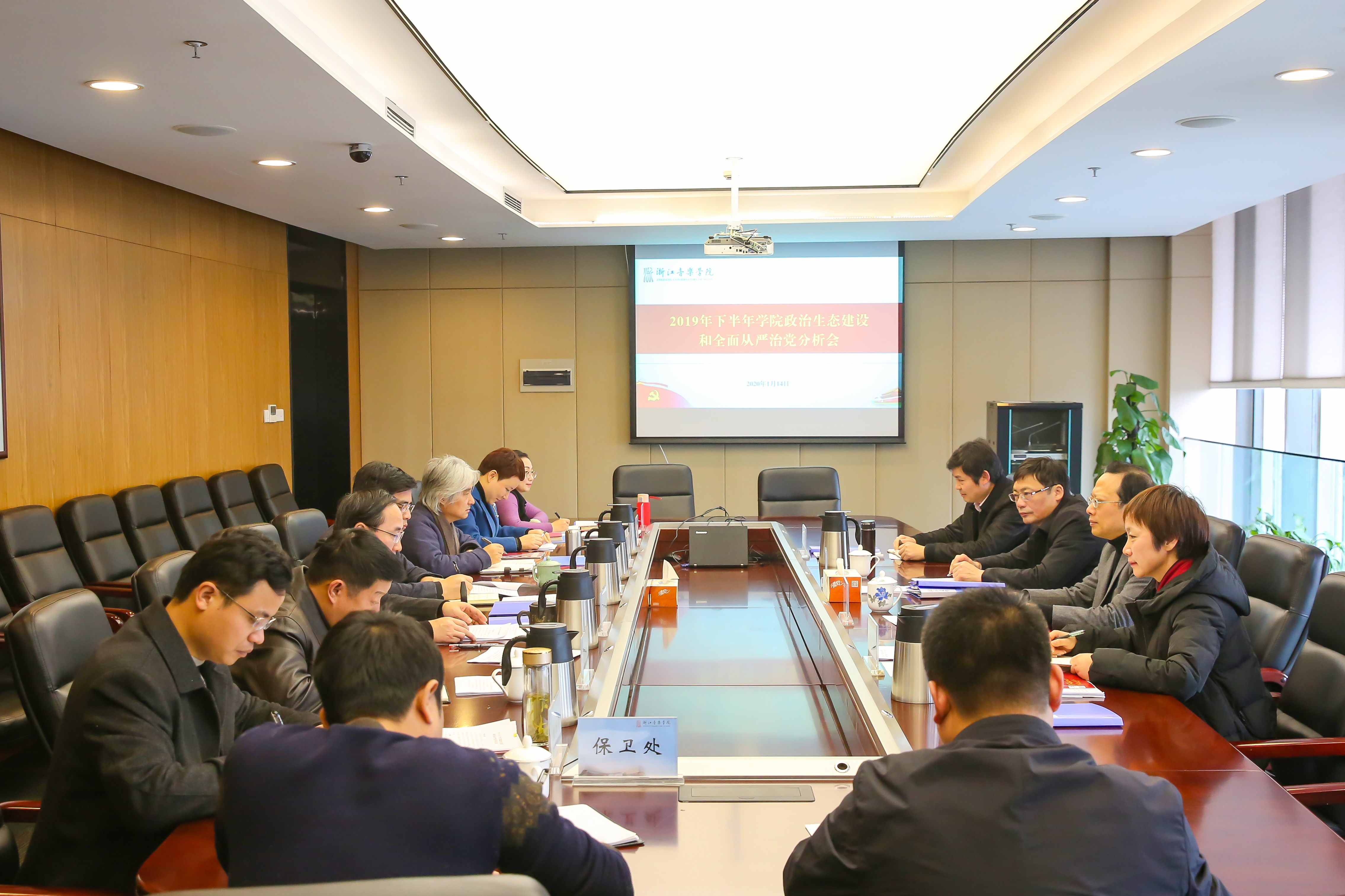 1月14日上午,2019年下半年政治生态和全面从严治党分析会在行政楼1003会议室召开。学院党政领导班子成员,党政办公室、纪检监察室、党委组织部、党委宣传部和保卫处负责人参加会议。会议由学院党委书记胡建新主持。
