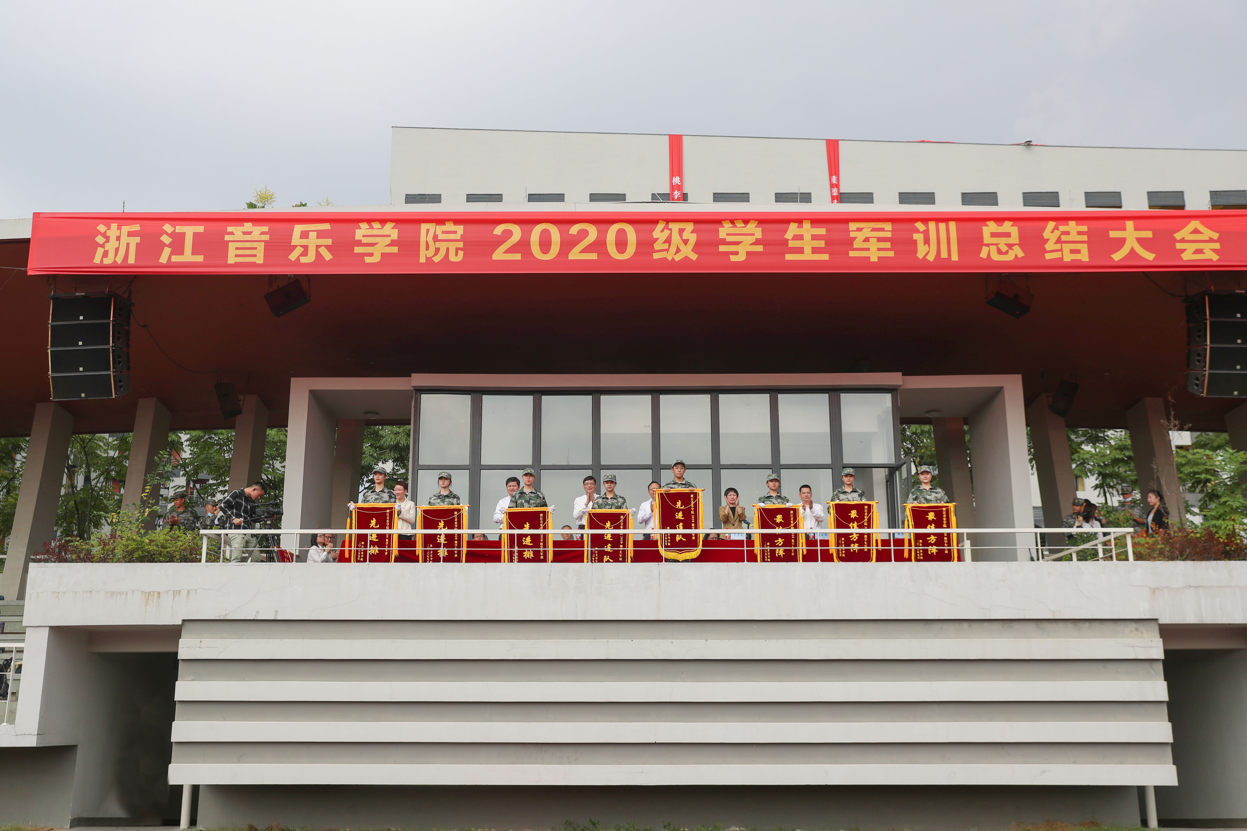 校党委副书记、副校长张建国宣读2020级学生军训先进集体和先进个人表彰决定,与会领导为获奖集体、个人颁奖。