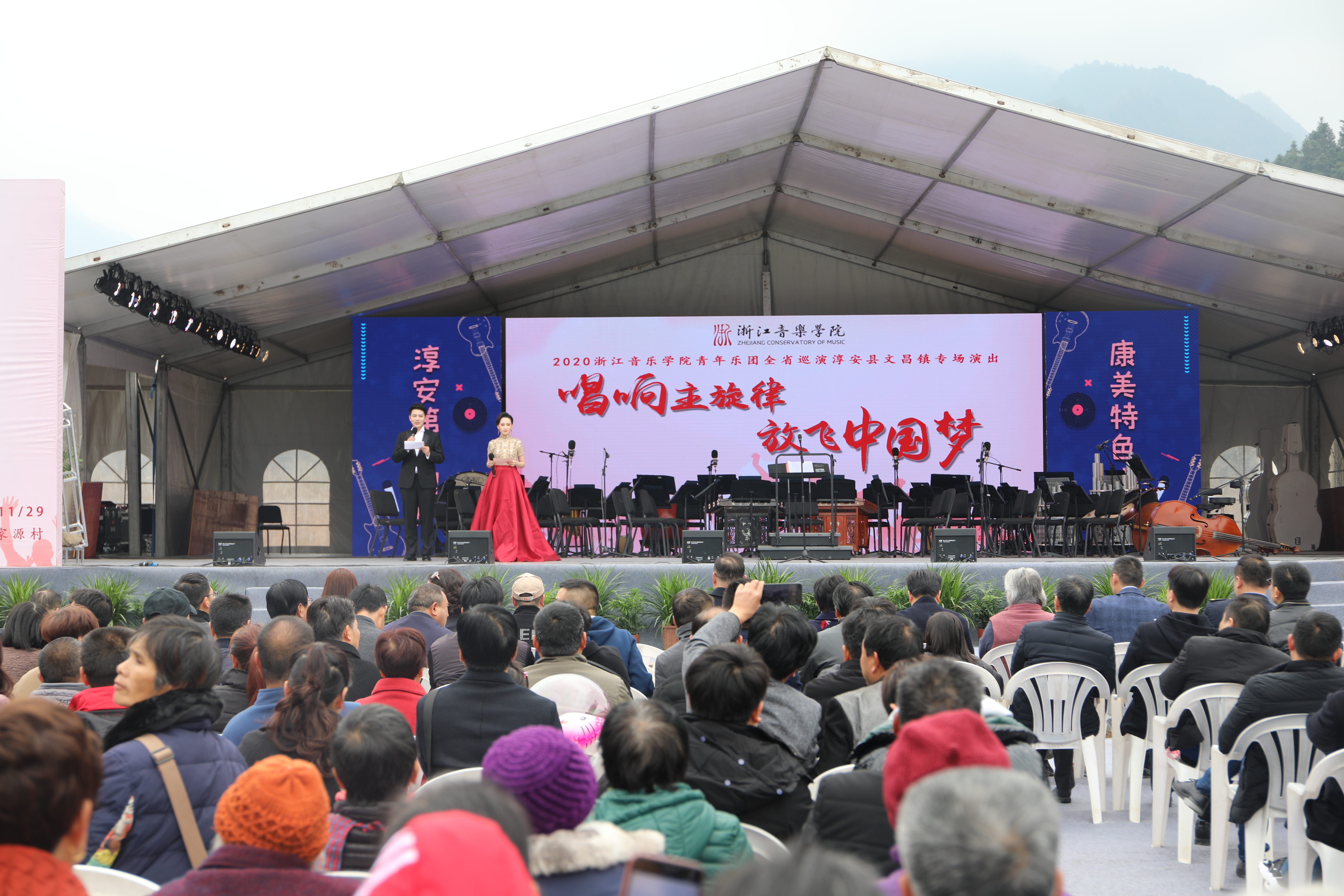 2020青年乐团工作自今年5月启动,以“唱响主旋律、放飞中国梦”为主题,旨在把优秀文艺作品送到地方、送往基层,真正将文艺精品送到乡间地头、百姓身边,通过增加学生舞台历练机会,提升学生舞台实践能力,探索构建音乐表演类专业实践育人的长效机制。此次青年乐团的演职人员近200人,以应届毕业生为主,他们将演出送到各地的剧院、报告厅、乡村文化礼堂等,为当地群众带来交响乐、国乐、声乐、舞蹈、戏剧、流行音乐等形式多样的演出活动。2020年巡演共计5场,演出的现场观众累计达3000余人次,其中,校内首场演出采用图片直播形式,慈溪、象山、淳安3场演出采用网络直播形式,点击量累计近20万人次。