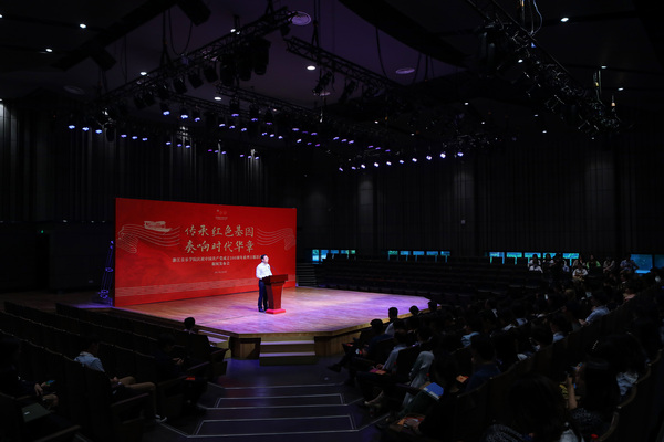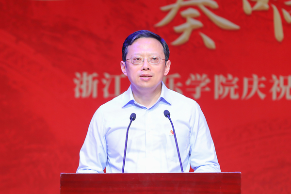 王瑞表示,在庆祝建党百年这幕时代大戏中,学院充分展现新时代文艺人的使命与担当,用一系列重大主题项目和原创艺术精品,讲好党的百年故事、唱出亿万人民心声、奏响伟大时代华章。除参与中宣部、文化和旅游部、中国文联举办的庆祝中国共产党成立100周年优秀舞台艺术作品展演剧目——大型歌剧《红船》、浙江省庆祝中国共产党成立100周年大型文艺演出的创作与排演外,学院还整合资源、全员参与,为庆祝建党百年准备了百余场内容丰富、形式多样、风格各异,具有浓浓红色印记、浙江味道和浙音特色的文艺演出,按照“每月一主题、每周一特色”的节奏轮番上演。他还简要介绍了学院创排的“东方的太阳——浙音国乐团专场演出”、“忆百年党史 启奋斗征程”——庆祝中国共产党建党100周年交响音乐会、 “大地之舞”献礼建党百年舞蹈专场、 “百年潮涌 筑梦复兴”——庆祝中国共产党成立100周年大型主题音乐会等大型综合主题音乐会。