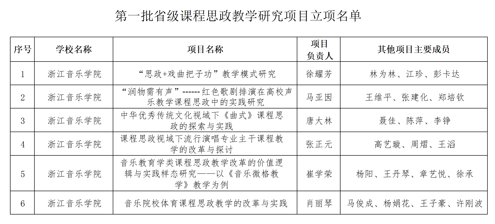 近日,浙江省教育厅公布了第一批省级课程思政教学项目立项名单,学院共有10个项目获批立项,其中,省级课程思政示范课程3门,省级课程思政教学研究项目6项,省级课程思政示范基层教学组织1个。