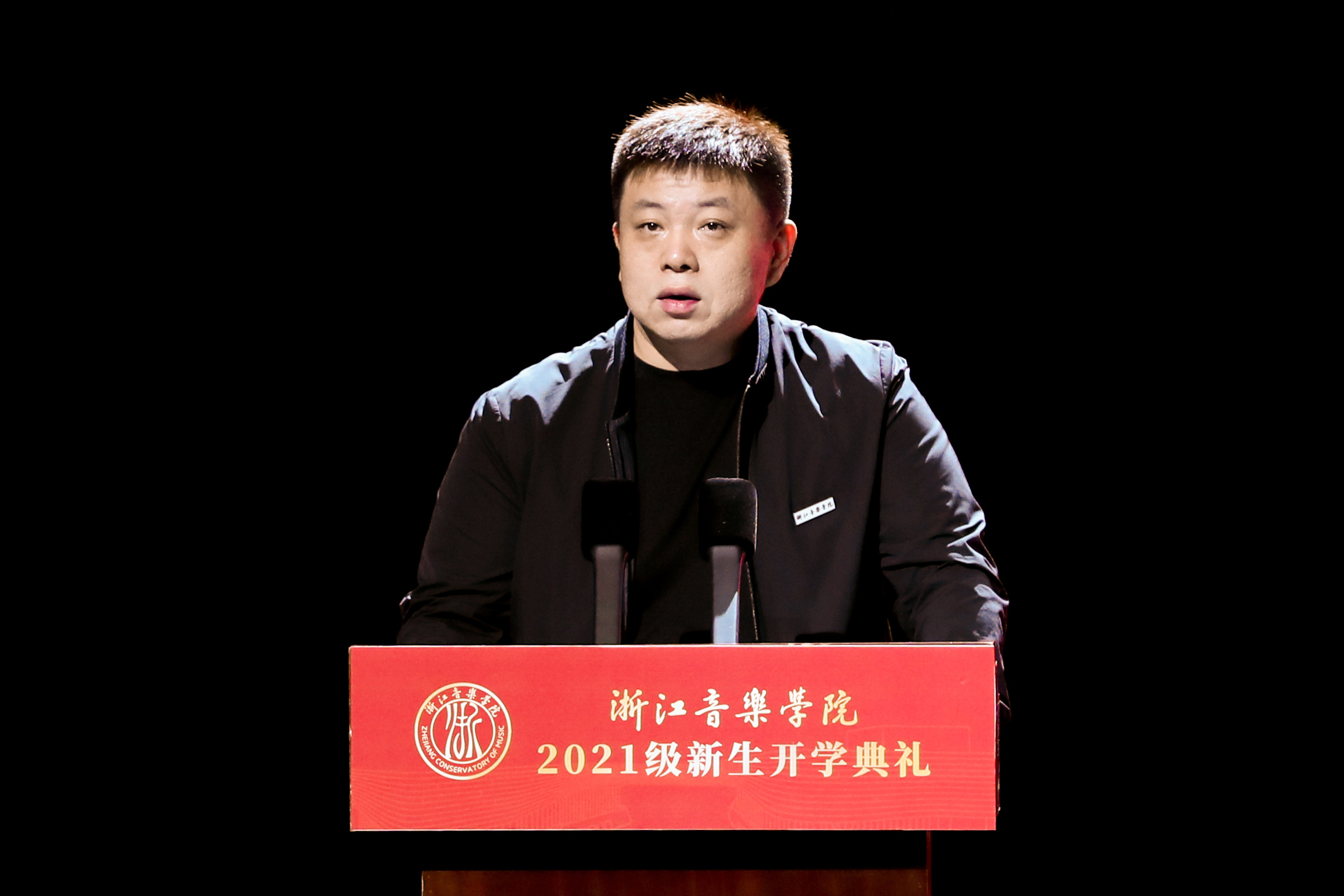 作曲与指挥系副教授王云飞作为教师代表发言。他表示,学院是一个充满活力且满载着光荣与希望的大家庭,他希望新生尽快找准角色,独立、自立、自强;迅速地成长,注重全方位发展;要有目标、有梦想,并一往无前地追逐;要有从艺者的责任与担当,不忘初心地走好自己的艺术道路,在浙音塑造全新的自我,成为父母、老师的骄傲,成为浙音的骄傲。