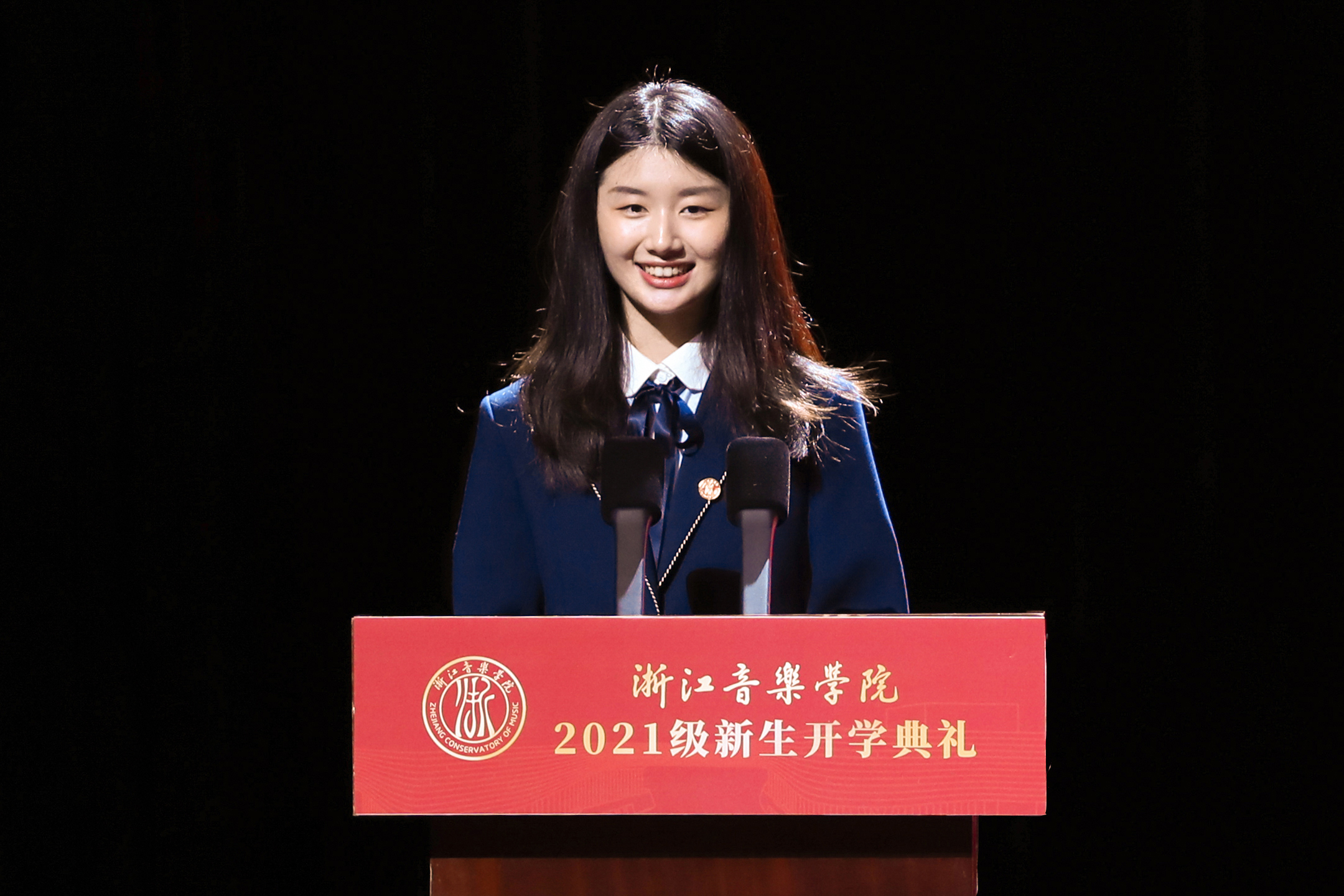 作为2021级研究生代表,音乐教育学院鲍雨露回顾了她本科在学院度过的充实四年,分享了新学习阶段的艺术梦想,并表示,我们是与新时代同向同行、共同前进的一代,要珍惜时光,用不畏艰难、锲而不舍的精神,让梦想和希望在浙音这篇沃土中生根发芽,将来为中华民族伟大复兴贡献自己的智慧和力量。