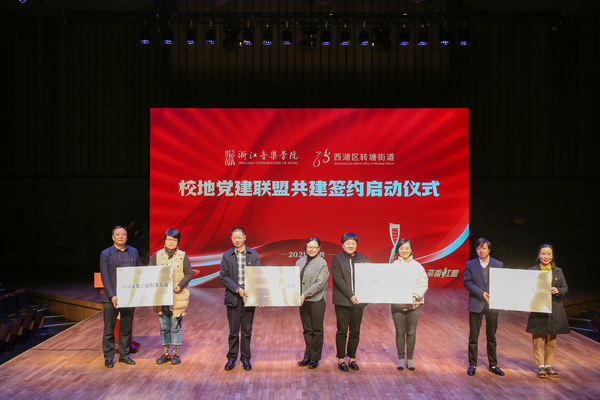 为贯彻落实省委基层党建工作会议精神和省委文化工作会议精神,进一步助力打造之江艺术长廊建设,强化红色美育赋能未来乡村建设,11月10日下午,学院与转塘街道党建联盟共建启动仪式在现代音乐厅举行。学院党委副书记贾秀英,党委委员、组织部部长、统战部部长奚丽萍,党委委员、宣传部部长、教师工作部部长李俊,西湖区委常委、组织部长陈宇,西湖区转塘街道党工委书记沈剑,西湖区委组织部副部长何里扬等出席启动仪式。
