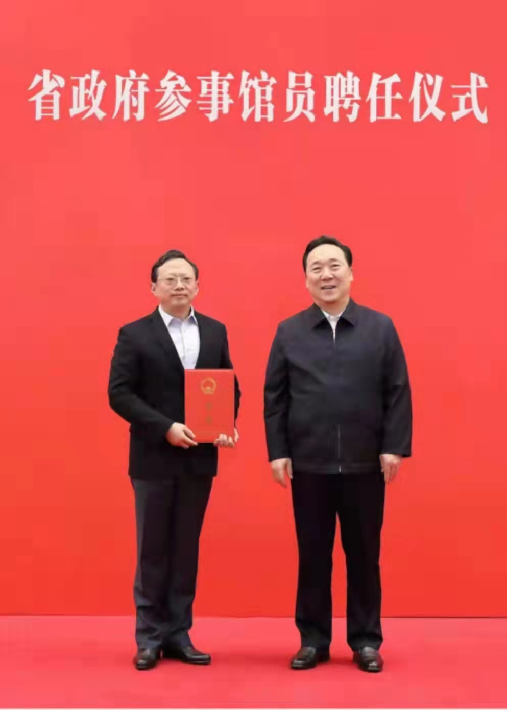 12月29日下午,省政府参事馆员聘任仪式在省人民大会堂举行,我院院长王瑞受聘浙江省文史研究馆研究员,省委副书记、代省长王浩为王瑞颁发了聘书。