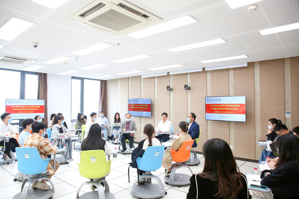 学生代表针对习近平总书记在中国人民大学考察时的重要讲话精神进行交流探讨。