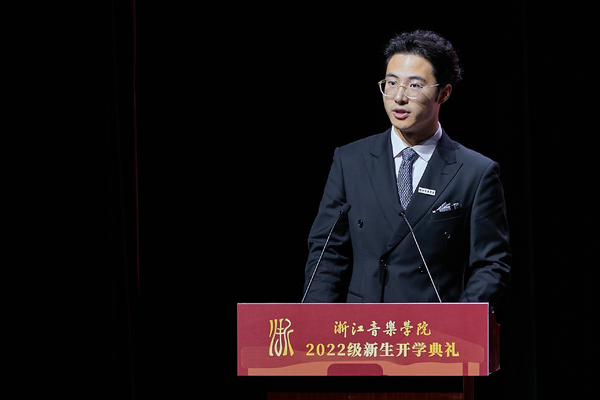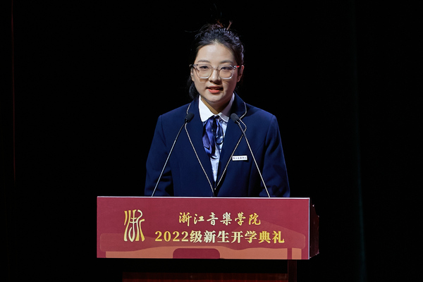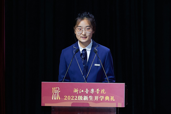 作曲与指挥系陆佳仪代表硕士研究生新生发言。她表示,青年时代的热情与奋进永远是每个人最值得留恋和回忆的,很幸运在浙音开启人生道路上的新篇章。她期待着更多的机遇与挑战,勇于创新创造,培养独立思考的能力,以更加严谨踏实的态度求学,成为一名“事必尽善”的优秀浙音人。