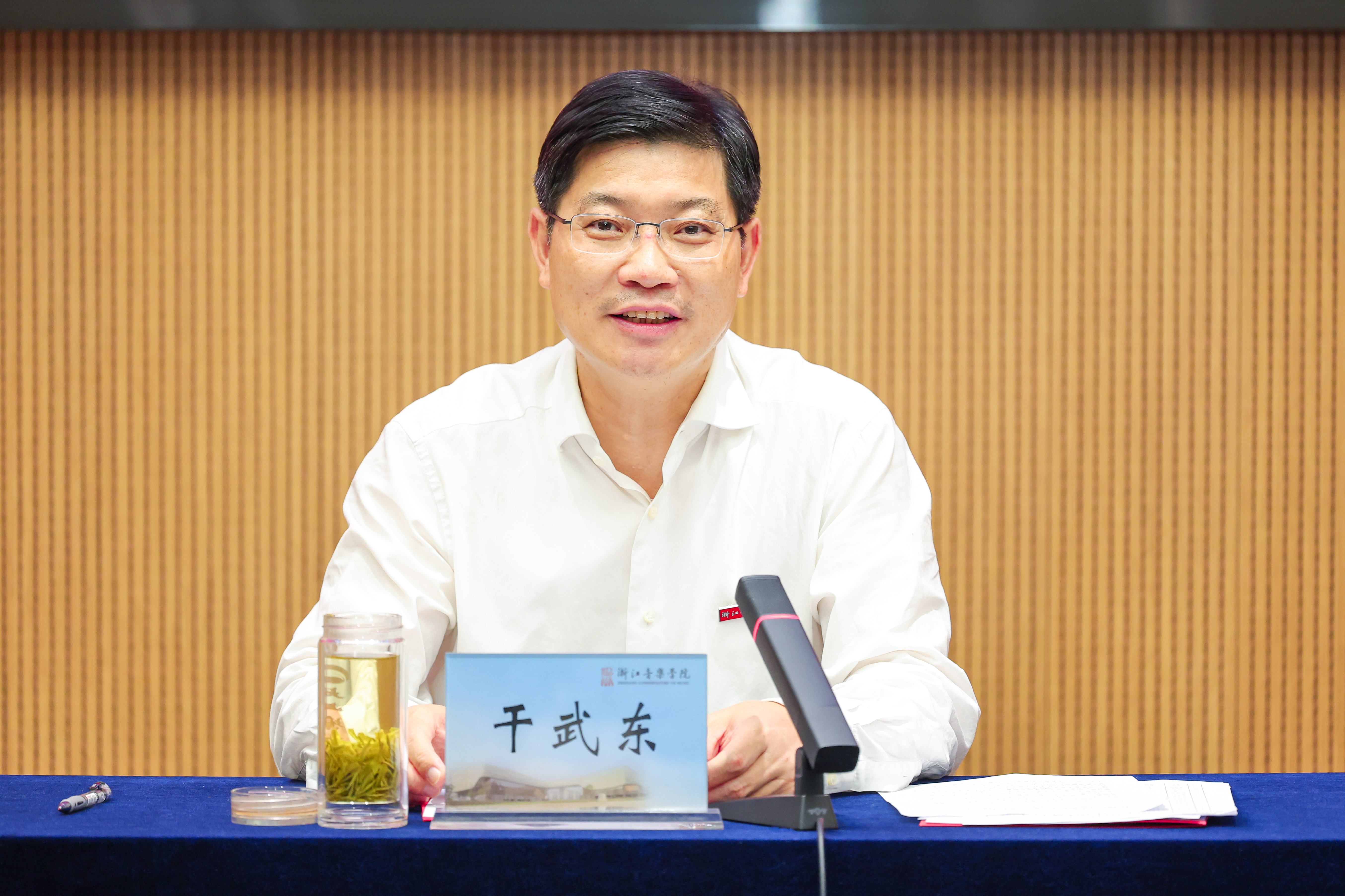 仪式上,干武东代表学院对新入职教职工表示欢迎。他介绍了学院的总体情况及近年取得的发展成绩,与全体新教职工一起重温了习近平总书记9月9日给全国优秀教师代表致信中的殷切嘱托,并对新进教职工提出了希望和要求:一要坚守为党育人初心,牢记立德树人使命。浙音教师既是教育工作者,又是文艺工作者,更要知晓肩上的重任,追求德艺双馨,争做“四有”好老师,把正确的道德观传递给学生,努力为学生打牢人生之基、发展之基,系好“人生第一粒扣子”。二要回应时代课题,践行“强国有我”。作为浙音的新生力量,要深入贯彻落实习近平总书记考察浙江重要讲话精神,充分发挥自身的专业优势和过硬的专业本领,坚持以人民为中心的创作导向,坚持守正创新,努力创作更多优秀的精品力作,在文化强省建设中担大任、挑大梁、立新功。三要坚持爱校荣校,做浙音发展的主人翁。作为浙音大家庭的一份子,要牢固树立主人翁意识,主动将人生规划、奋斗目标、工作重心与学院发展大局、改革大局紧密结合,立足本职,团结协作,汇聚起推动学院高质量发展的强大合力,坚定不移为学院“高水平一流”建设以及各项事业高质量发展做出贡献。