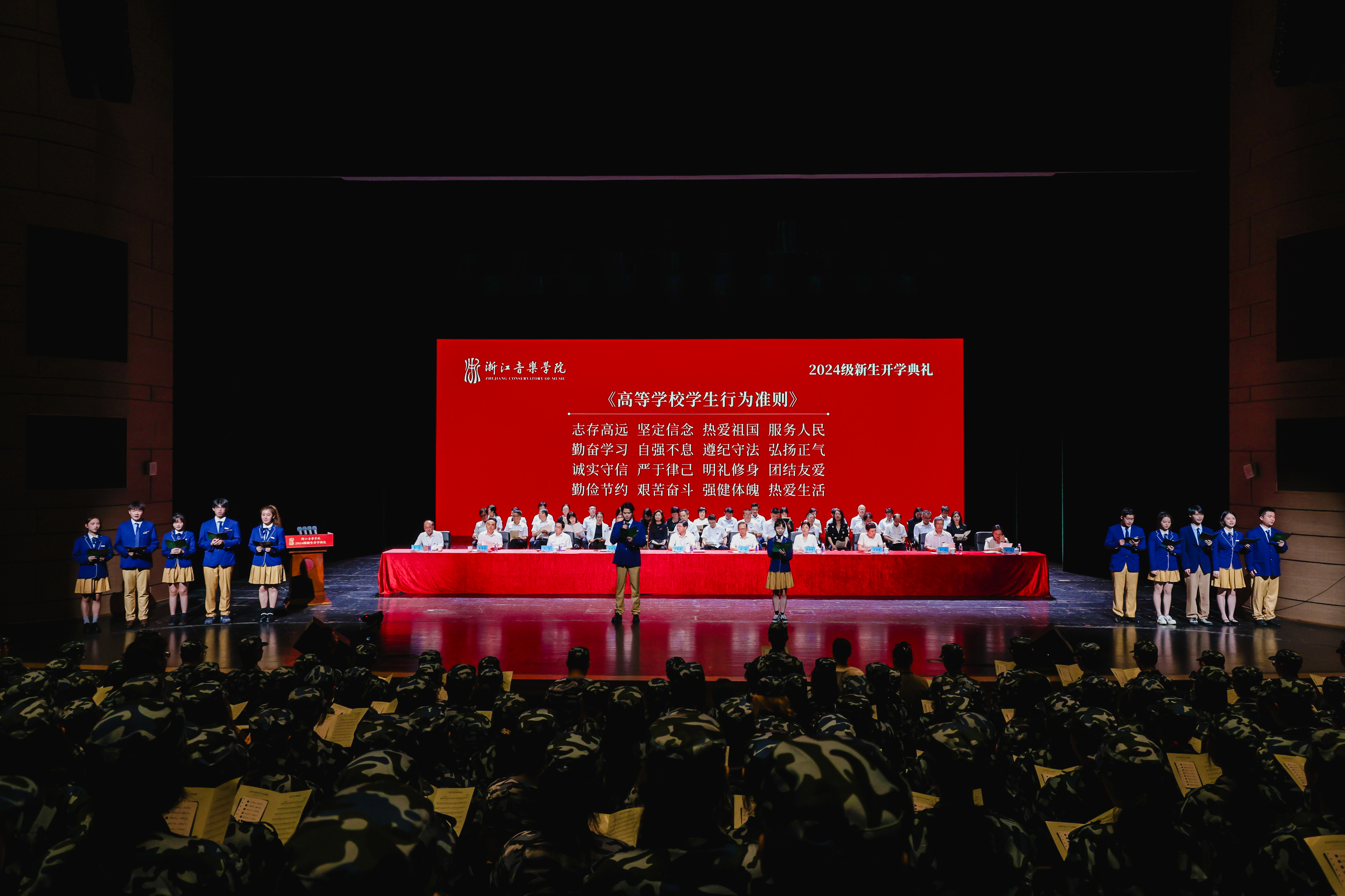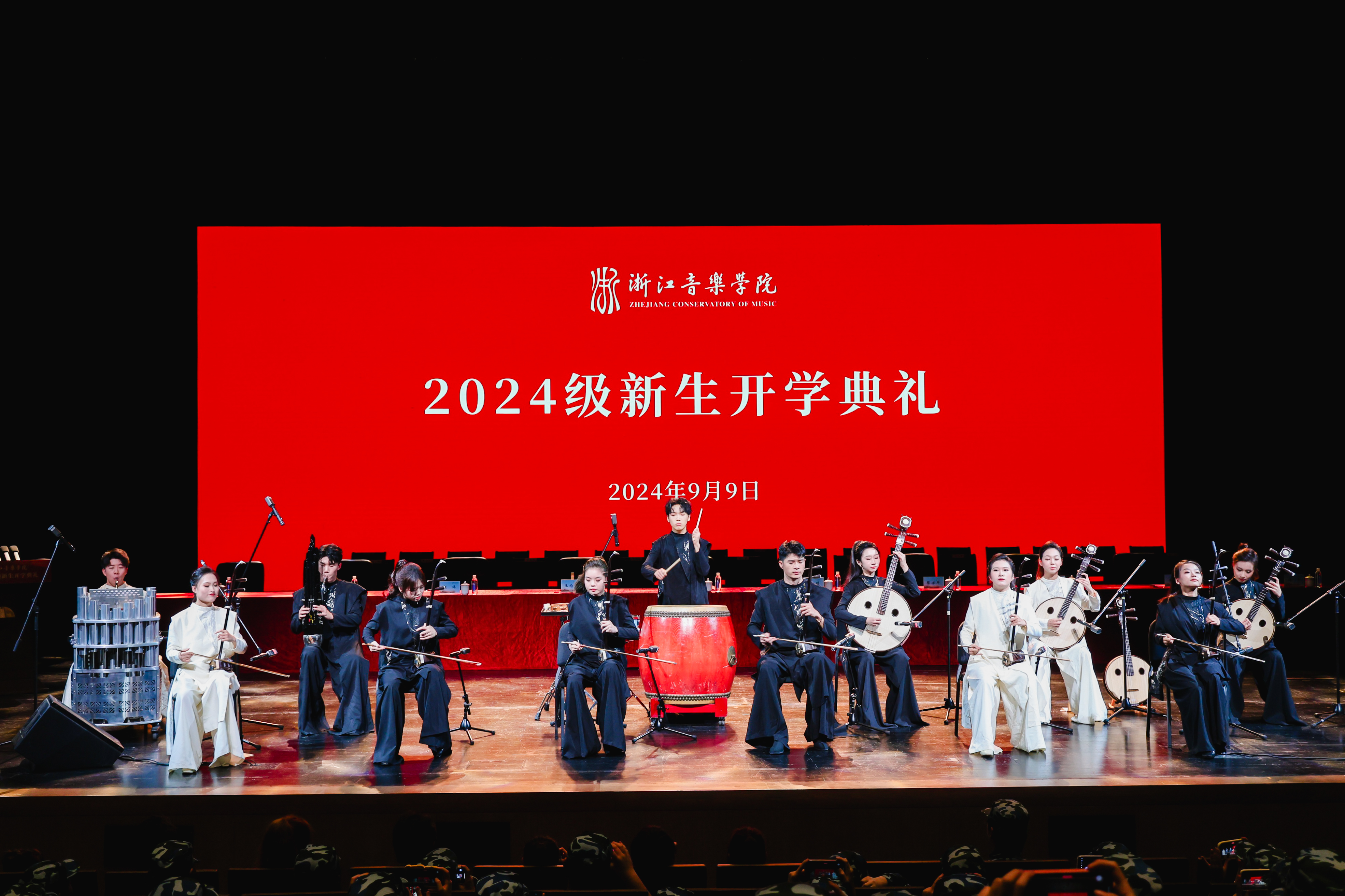 今天,学校为来自全国29个省区市和港澳台地区的698名本科生、207名研究生以及11名留学生,共916名2024级新同学举行开学典礼,同时祝贺同学们从艺考新政和两万多名考生中脱颖而出成为光荣的浙音人,今年还有28名新教师加盟浙音,为学校的事业发展增添了新生力量。在此,我首先代表学校,向大家表示热烈的欢迎!