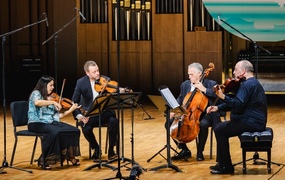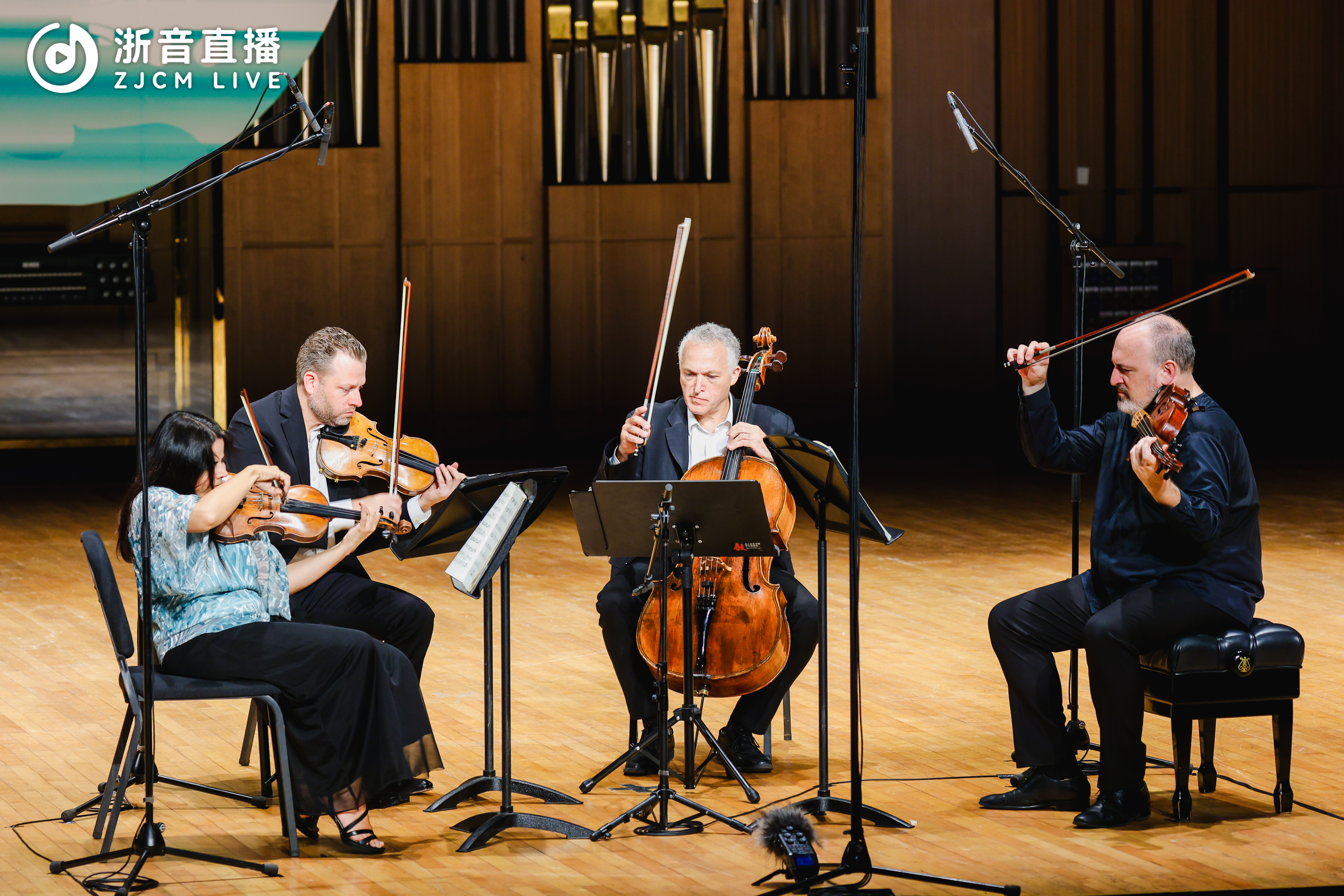 第三首乐曲,也是节目单中最后一首作品,是来自俄罗斯作曲家德米特里·肖斯塔科维奇的A大调第二弦乐四重奏。这首作品曲风嘹亮激进,同时又带有忧郁哀伤。宏大的作品结构里,各式各样的色彩变化令人流连忘返。第一小提琴家西敏有着大量的独奏片段。她的琴声细腻而不失力量,变化莫测的揉弦使得琴声牢牢抓住了听众的听觉和心灵。第二小提琴家奥斯汀和中提琴家马克的配合也堪称一绝,在一旁牢牢衬托出了第一小提琴的音域。四位音乐家对于这部庞大作品的演绎,使得音乐厅爆发出了雷鸣般的掌声。