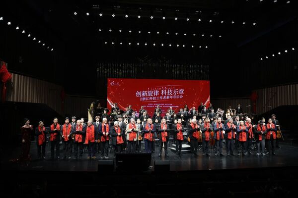 音乐会在浙音教师的精彩表演中开场。百嘎利、高雅分别演唱了内蒙古乌拉特民歌《鸿雁》和电影主题曲《如愿》,昂扬清丽的歌喉、耳熟能详的歌曲,将平日辛勤耕耘于科技领域的专家学者们,瞬间带入艺术的唯美境地。学校教师严圣民更是演唱了由中国工程院院士李大鹏作词的歌曲《浪淘沙—木芙蓉》,艺术与科技的交融在旋律里呈现。每一个音符,每一句歌词,都仿佛在诉说科学与艺术之间那份美妙的和谐与共鸣。