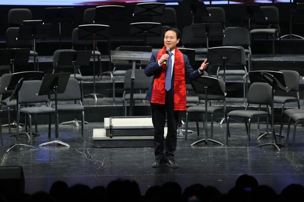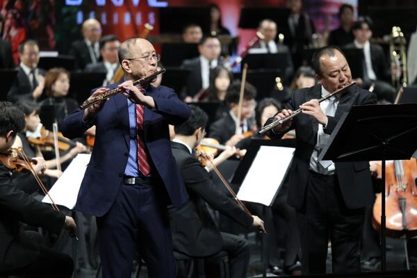 在全部表演结束后,管晓宏同交响乐团的演奏家们即兴演奏起《我的祖国》,当熟悉的乐曲响起,振奋激昂,体现了大家的科技报国之心。