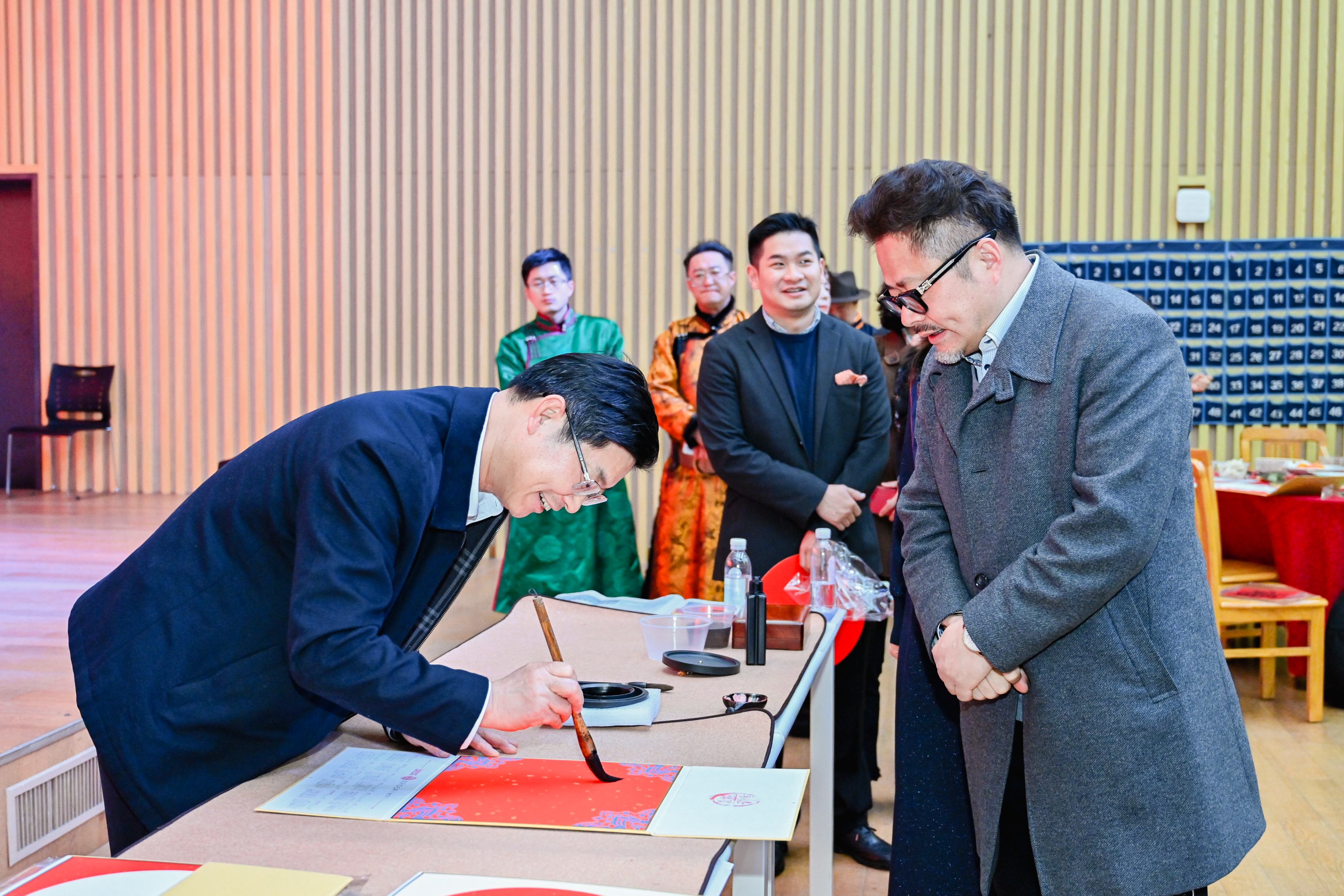 干武东现场挥墨送福,共画同心圆。他代表学校党委向各民主党派及高层次人才代表送上新春祝福,对其过去一年,在助力文化强省建设、推动学校高质量发展和教书育人事业中所取得的丰硕成果表示肯定。他指出,2024年是学校全面贯彻落实党的二十大精神深化之年,也是学校全面实现“十四五”规划目标任务、加快推进高质量内涵式发展的关键之年。通过大家的努力,学校推进了一系列变革性实践、取得了一系列开创性成果、实现了一系列突破性进展,“高水平一流”音乐学院建设的步伐更加稳健。