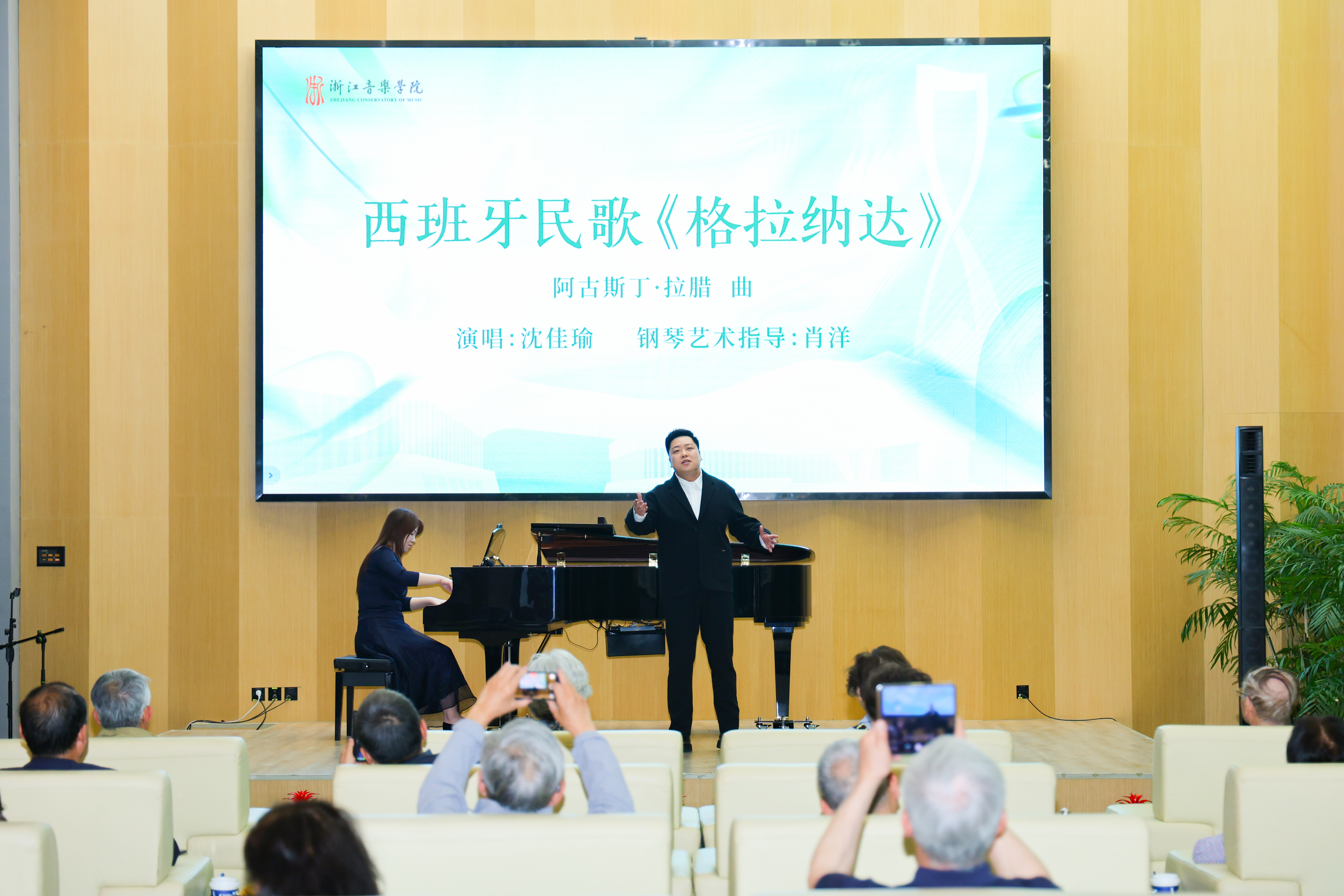 在教学实践演出环节,来宾们观看了由国乐系、声乐歌剧系、管弦系等师生表演的民乐合奏《喜相逢》《我的祖国》、歌曲《摘棉花》《格拉纳达》、弦乐与钢琴《灯火里的中国》等节目。活动现场气氛热烈、掌声雷动,师生的精彩表演得到来宾们的高度肯定。