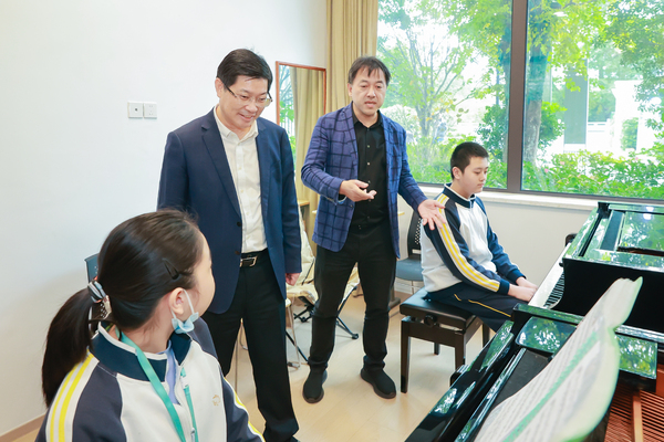 在全面深入走访后,干武东对附中龙坞校区优美的教学生活环境、浓厚的艺术文化氛围,以及附中班子成员倾情细致、井然有序的管理秩序给予了高度肯定。他指出,作为音乐人才早期培养的摇篮,附中正处于特殊而关键的教育阶段。要持续深化教学与艺术实践的有机结合,让学生在课堂与舞台的锤炼中成长;要精心培育独具音乐特色的校园文化,营造润物无声的育人氛围;要不断优化信息化服务支撑体系,以智慧校园建设助推教育教学模式创新。