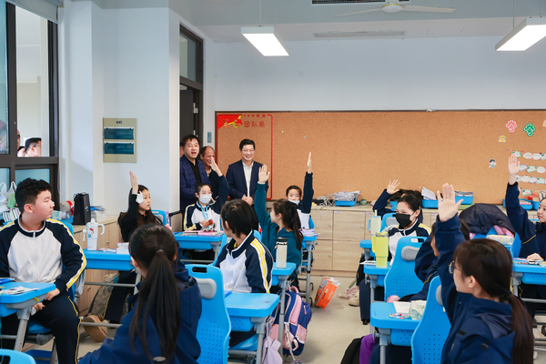 从窗明几净的教室到功能齐全的练功房,从朝气蓬勃的运动场馆到温馨便捷的生活设施,干武东一行在附中班子成员的陪同下,对学生的学习环境与生活保障进行了全面细致的考察。大家深入课堂、走进附中师生中间,与文化课及专业课教师亲切交流,近距离观摩学生的班级排练。大家还亲自体验了智慧琴房、智能安保等数字化系统的便捷与高效,对校区利用现代科技赋能教学管理、提升服务保障水平的创新举措表示赞许。调研结束后,干武东一行与附中师生共同用餐,亲身体验学生生活,零距离倾听师生心声。